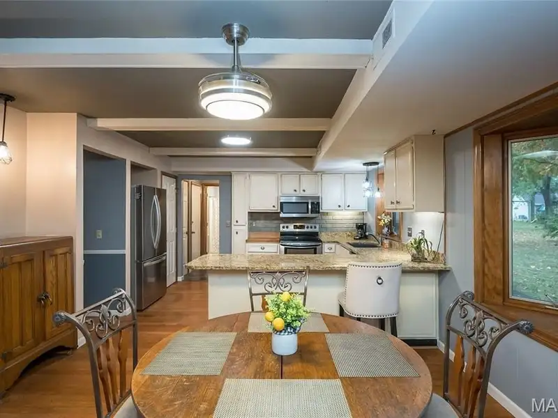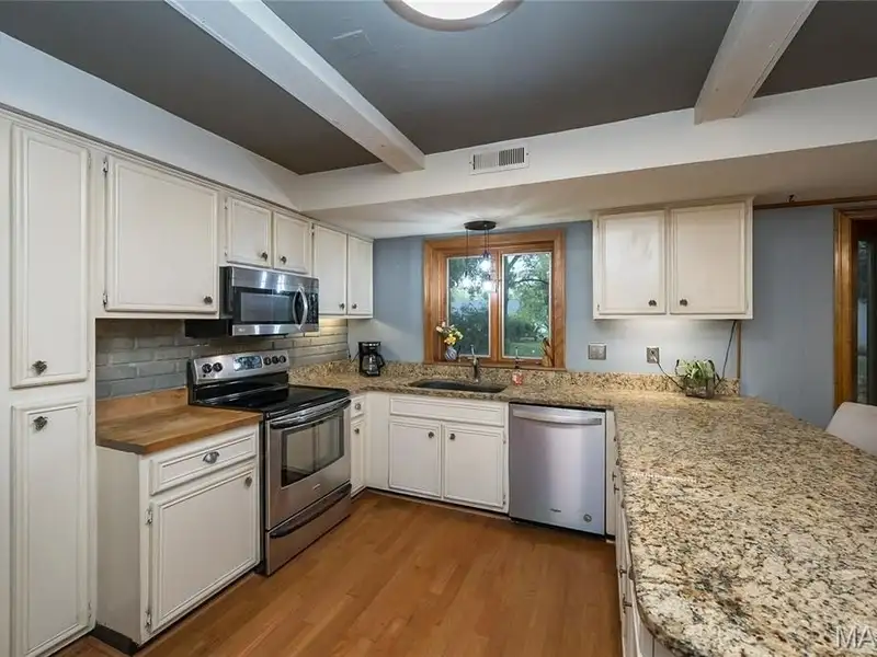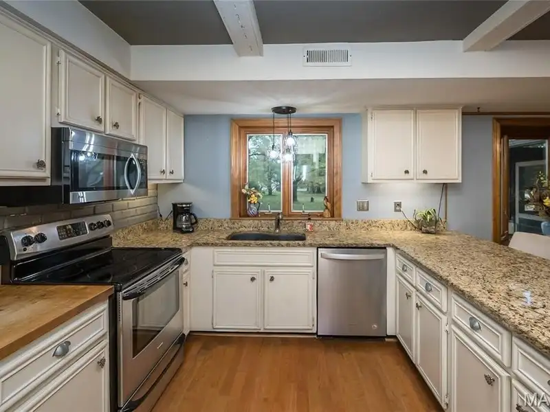 - Granite countertops in kitchen