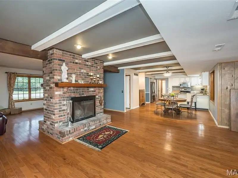 - Floor-to-ceiling fireplace in living room
