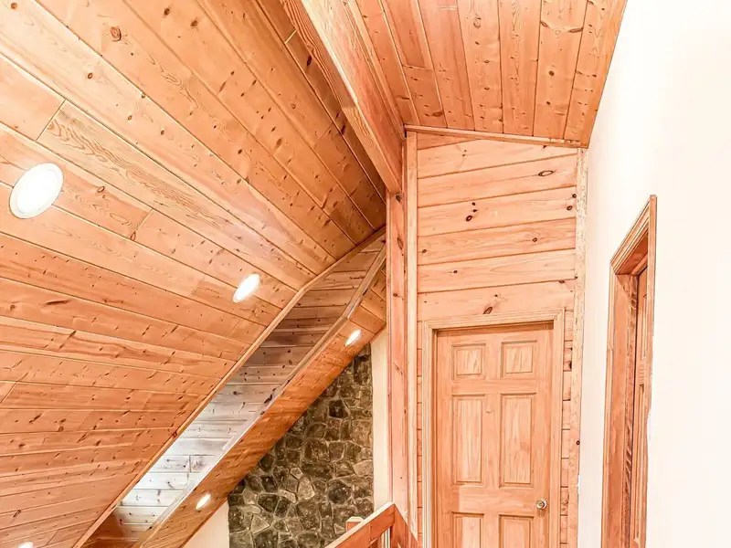 - Soaring cedar cathedral ceilings