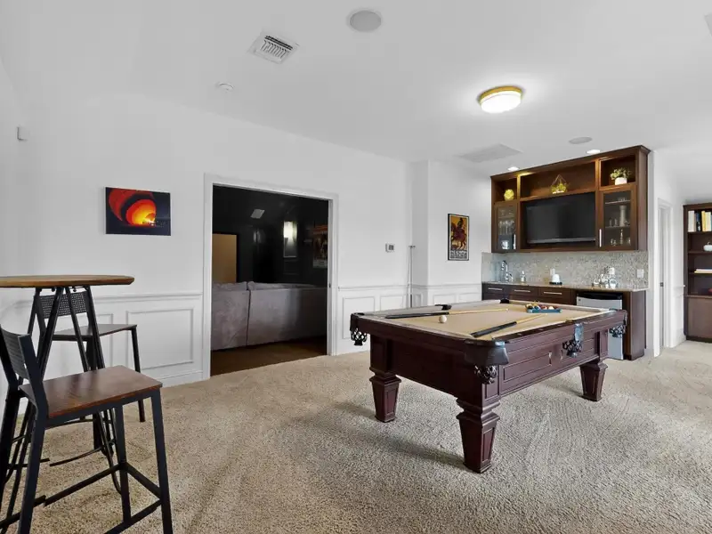 - Movie room with projector screen and surround sound