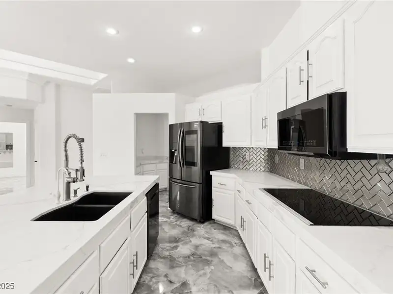 - Open kitchen with quartz countertops