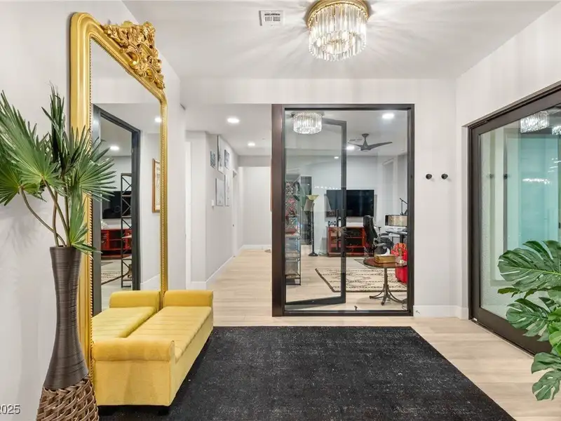 - Soaring 12' ceilings with chandelier