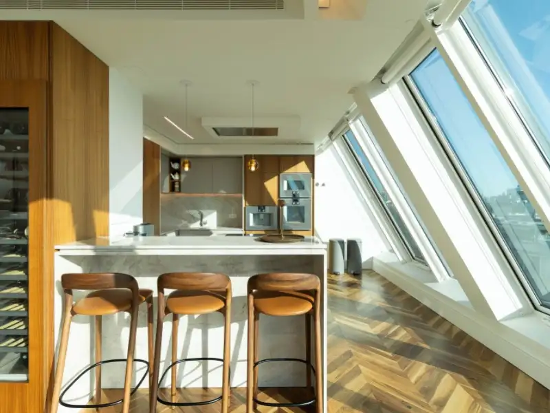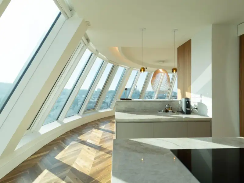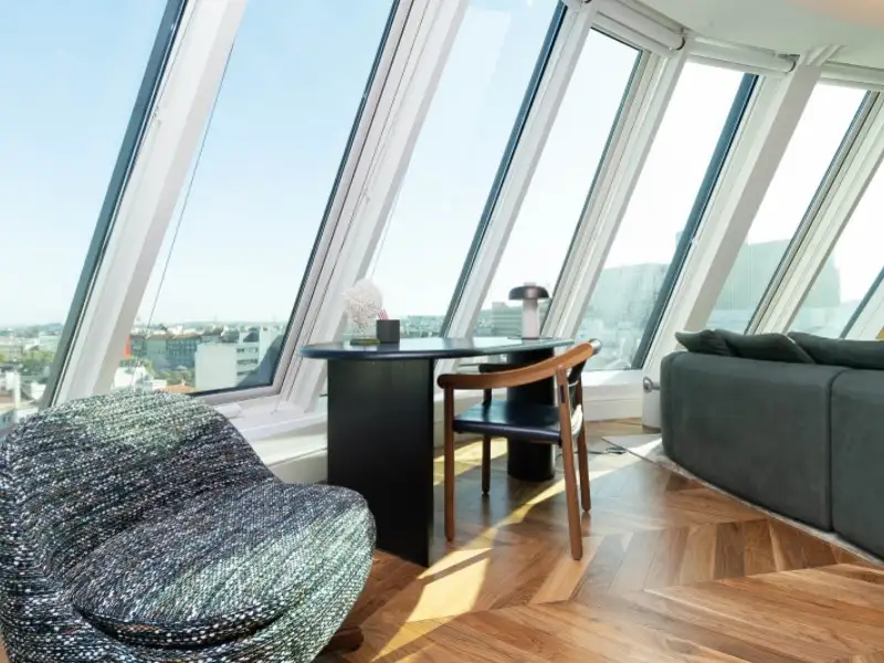 - Spacious 65 m² glass-paneled living room