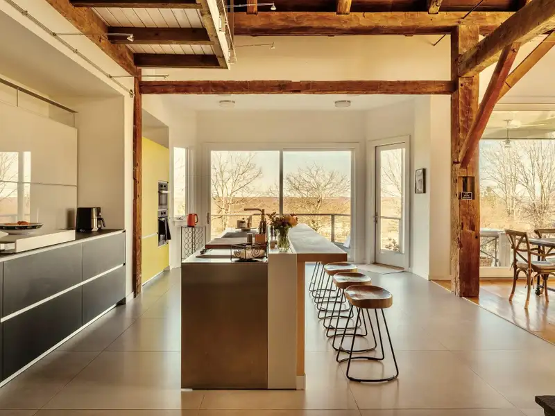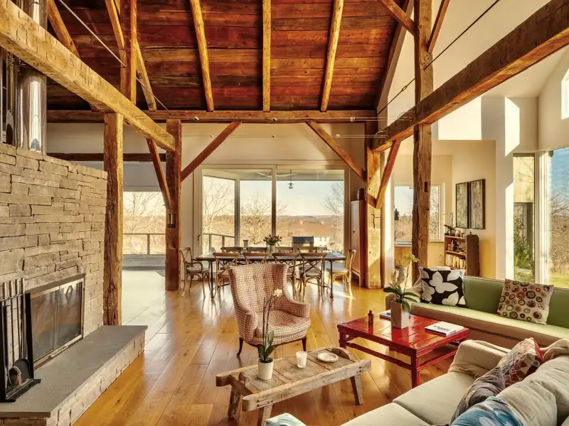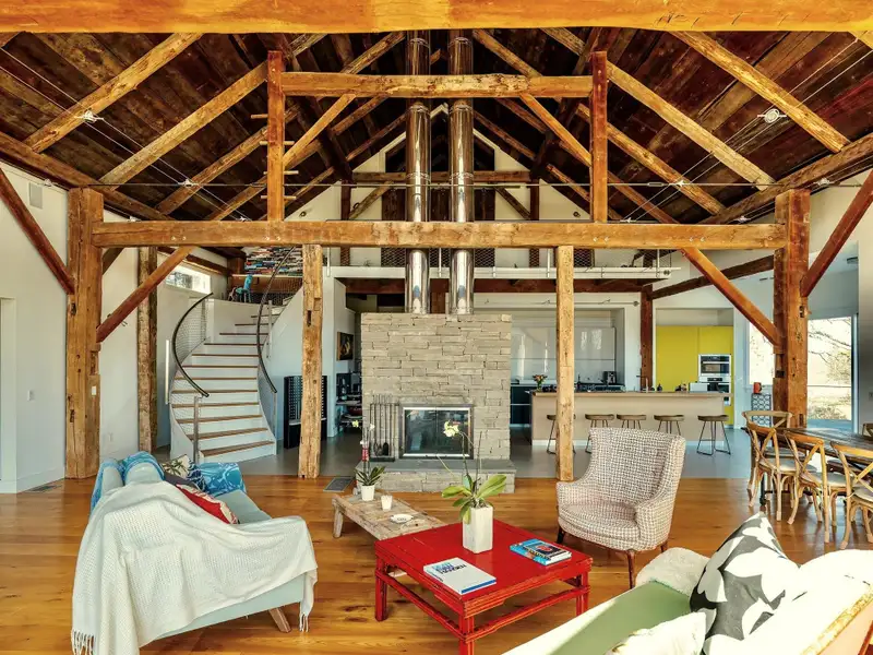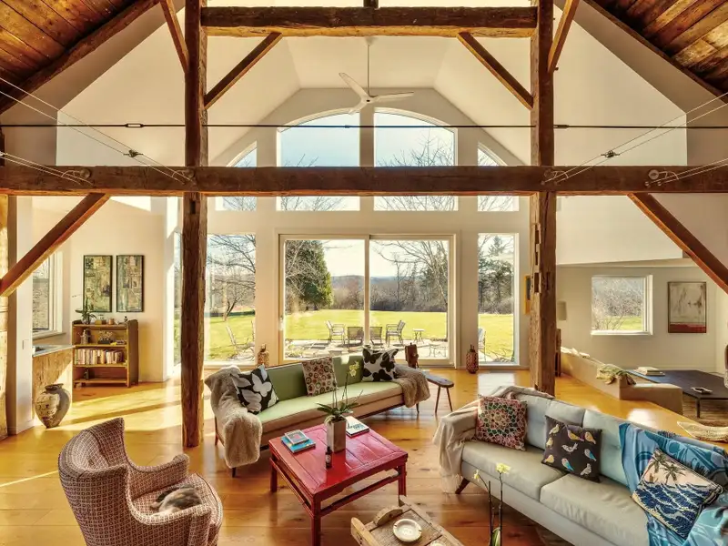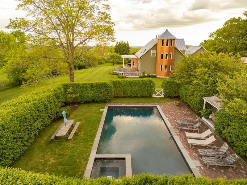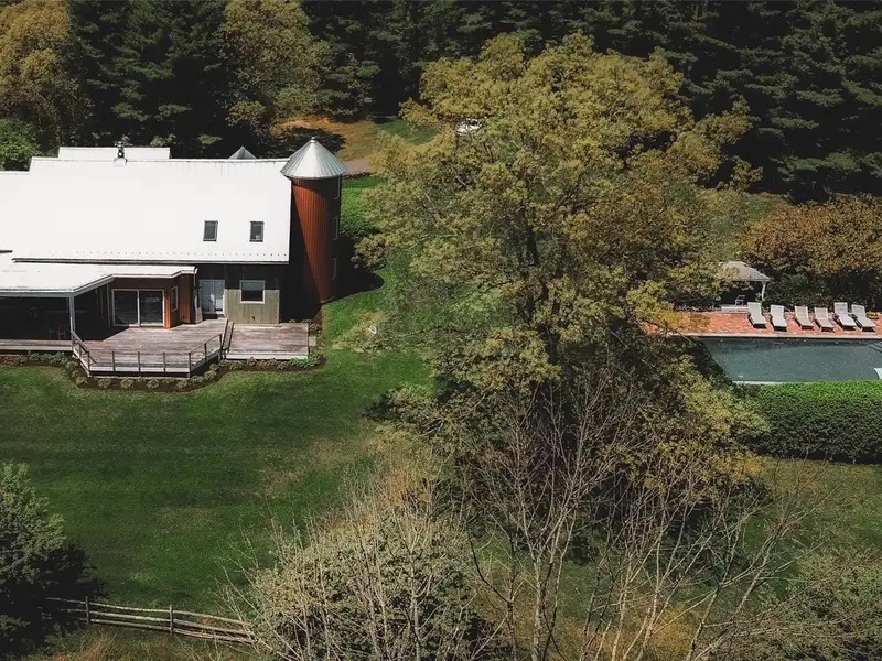 Academic-Year Rental | SeptemberJune | $8,500/month | Fully FurnishedAt the end of a winding country drive, where tall pines rise like quiet sentinels and sunlight filters through branches, the Bantam Barn reveals itselfset high on a hill, completely hidden from view. This exceptional long-term rental blends the soul of a 19th-century barn with the ease and elegance of modern living, offering a rare opportunity to dwell in both history and comfort.Thoughtfully restored and architecturally reimagined, the home features reclaimed barnwood, antique hand-hewn beams, and wide-plank floors throughout. Natural textures are paired with clean lines and contemporary finishes, creating interiors that feel both grounded and luminous.The heart of the home is a dramatic great room with soaring ceilings and a fieldstone fireplace, surrounded by walls of windows that frame views of the surrounding woods. The sleek, modern kitchen is outfitted with integrated appliances, double ovens, an induction cooktop, and a massive islandideal for both daily rituals and entertaining. Just beyond, a sunken den/TV room provides a cozy, informal space to unwind.The layout includes four bedrooms and two-and-a-half baths. The ground-floor primary suite is a private retreat with a walk-in closet and a marble-clad ensuite bath. All bathrooms are uniquely housed within the home's original silo, adding sculptural charm and a sense of whimsy to everyday routines. At the top of the silo, a lofted office nook offers a peaceful spot for remote work or creative pursuits.Outside, nearly five acres of lawn and forest provide a serene, private backdrop, with a sparkling inground pool for lingering late-summer afternoons.Located in the heart of Litchfield County, the Bantam Barn is ideally situated for families or faculty seeking proximity to the regions top independent schools, including The Hotchkiss School, Indian Mountain, Rumsey Hall, The Frederick Gunn School, The Kent School and more. Just minutes from Bantam Lake, Arethusa Farm, White Memorial Conservation Center, and the shops and restaurants of Litchfield and New Preston, this fully furnished home offers a peaceful, design-forward base from which to experience the Litchfield Hills.