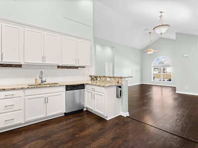- Vaulted ceilings create spacious feel