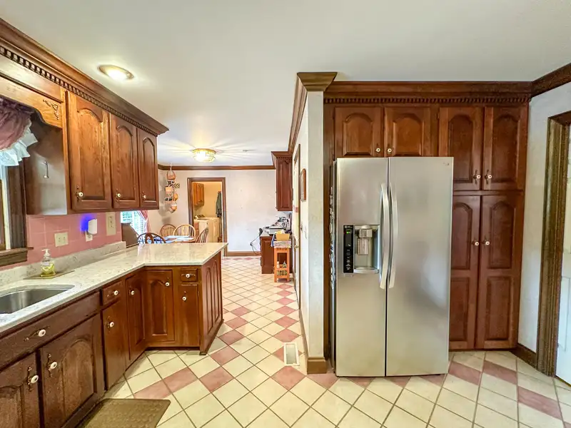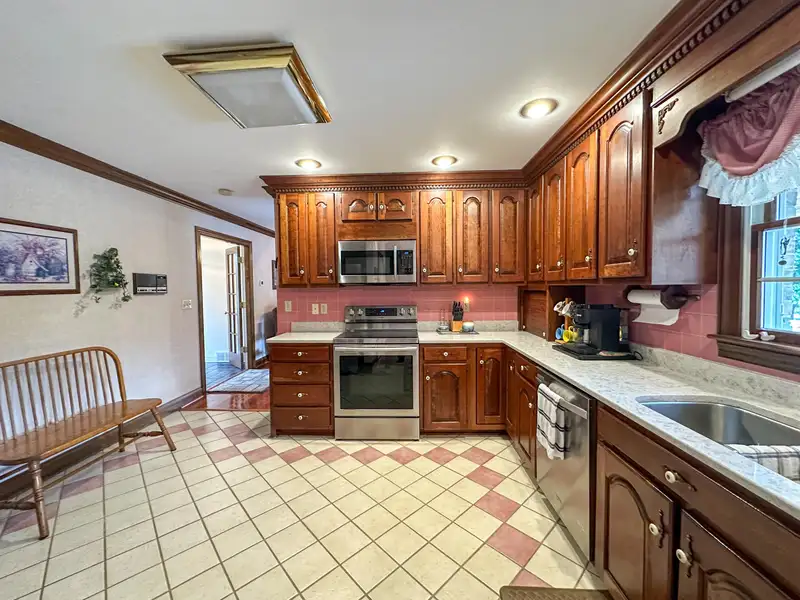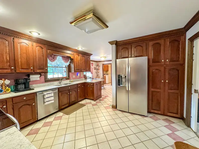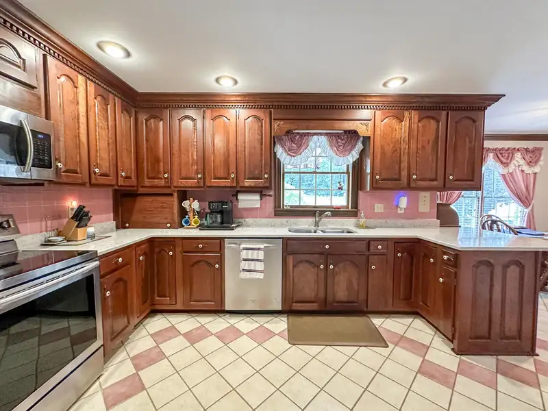 - Custom kitchen with cherry cabinets