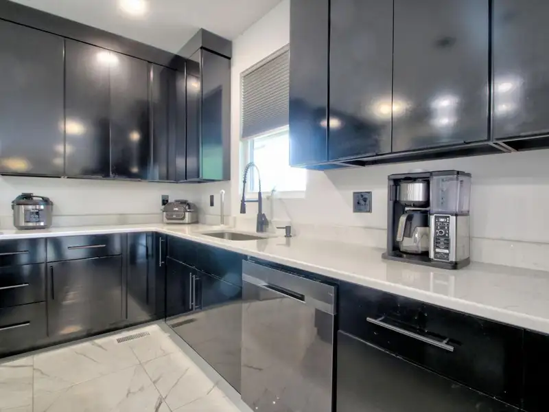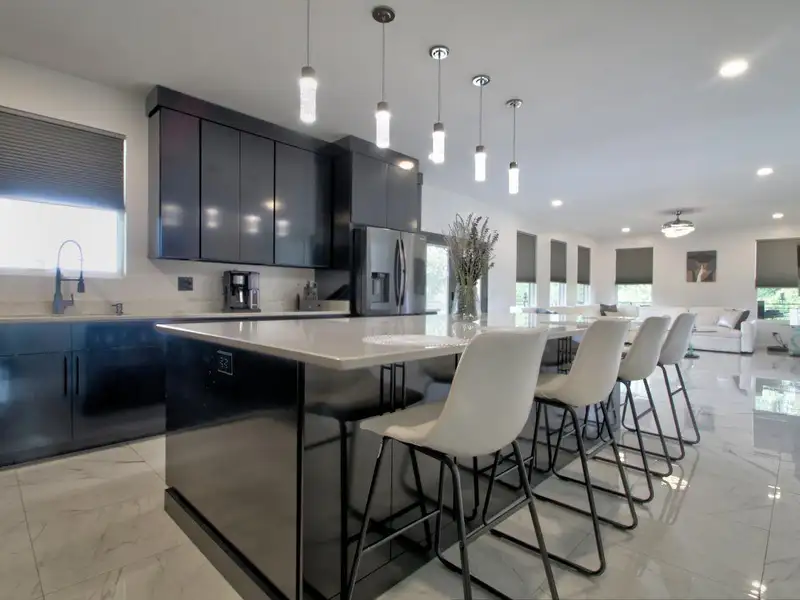 - Oversized kitchen island and breakfast area