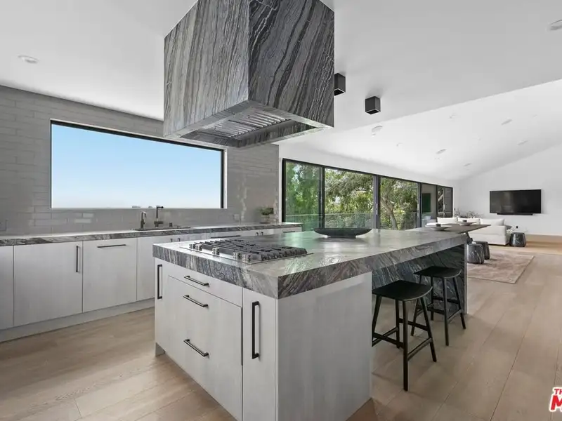 - Kitchen with waterfall island and large pantry