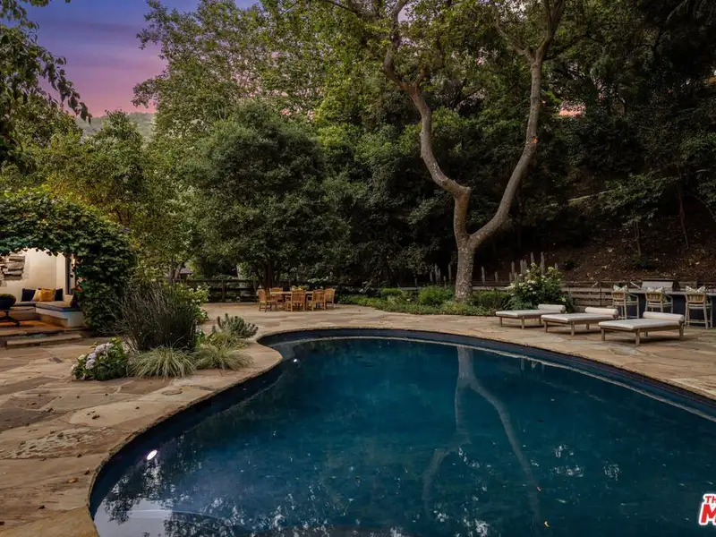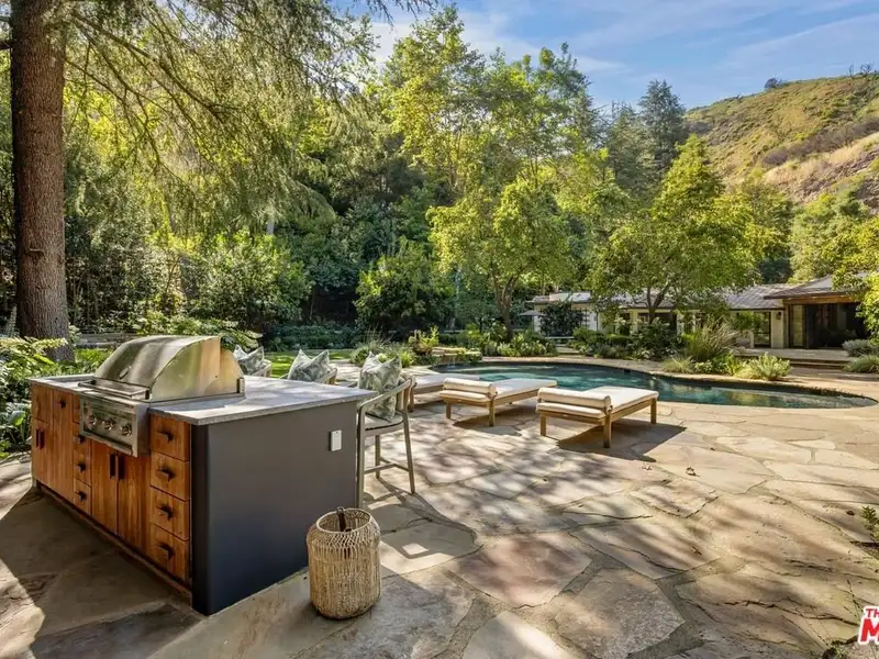 - Solar-heated pool with outdoor kitchen and pizza oven