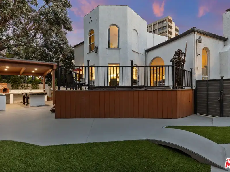 - Backyard with spa, pizza oven, fire pit