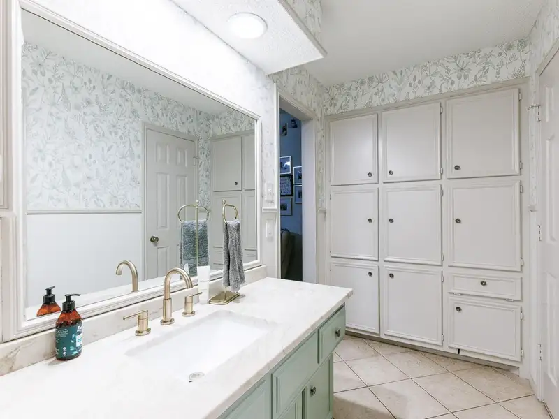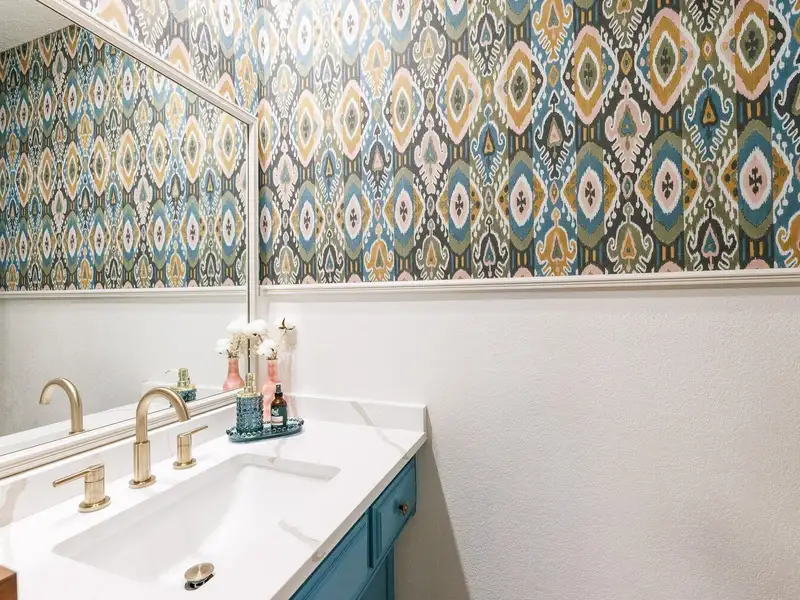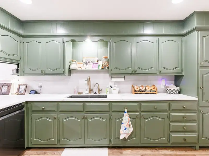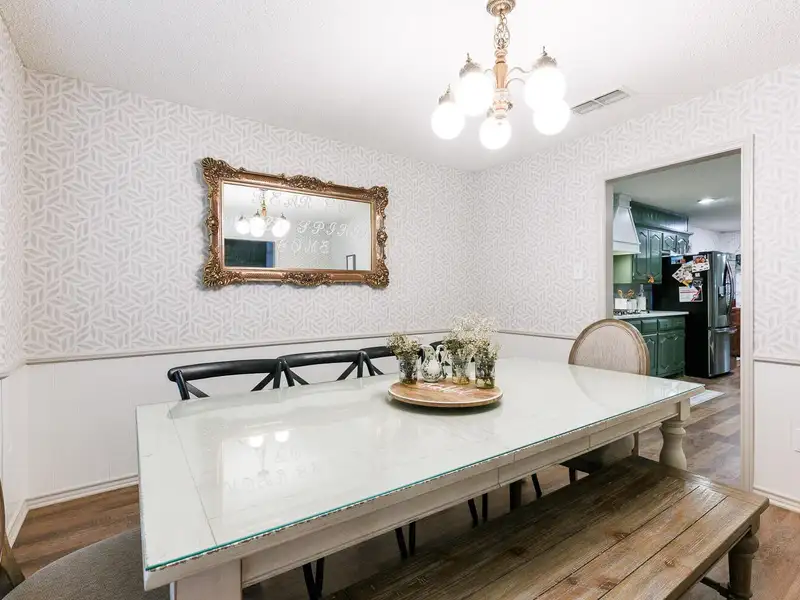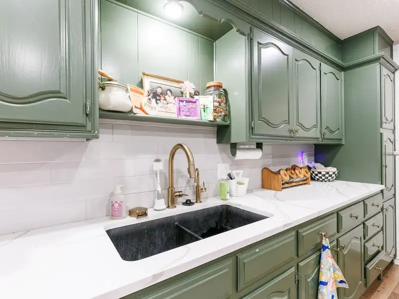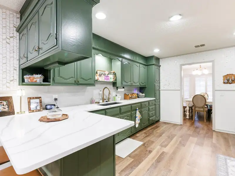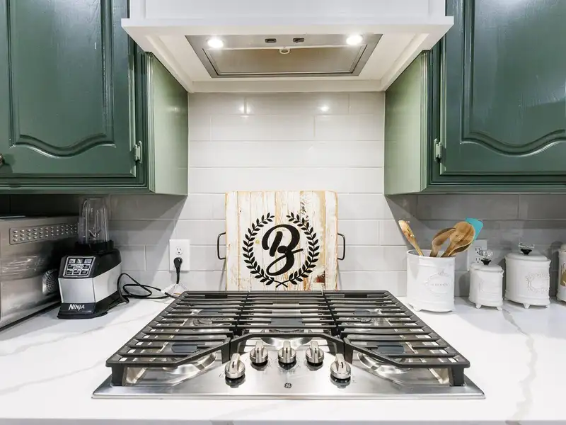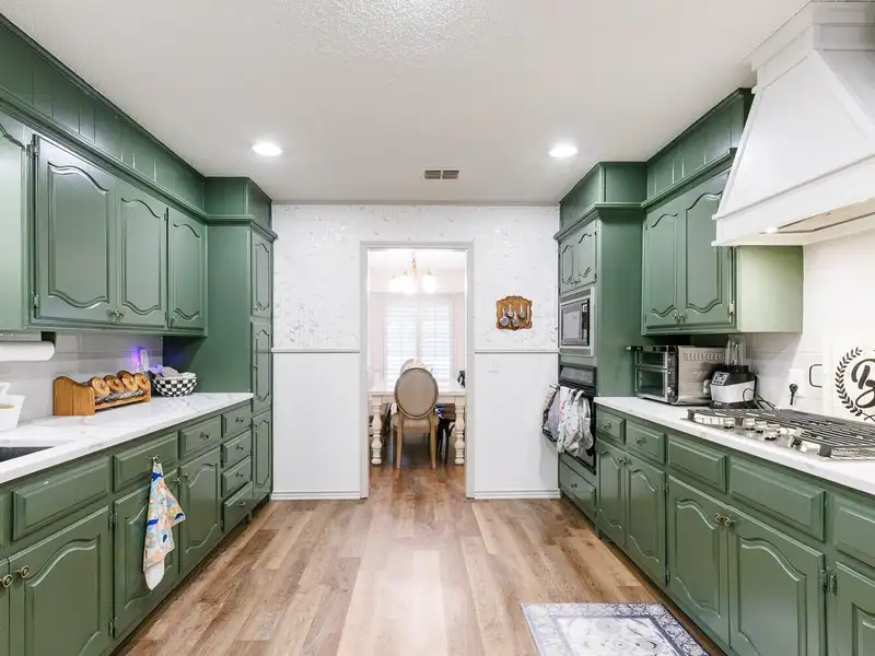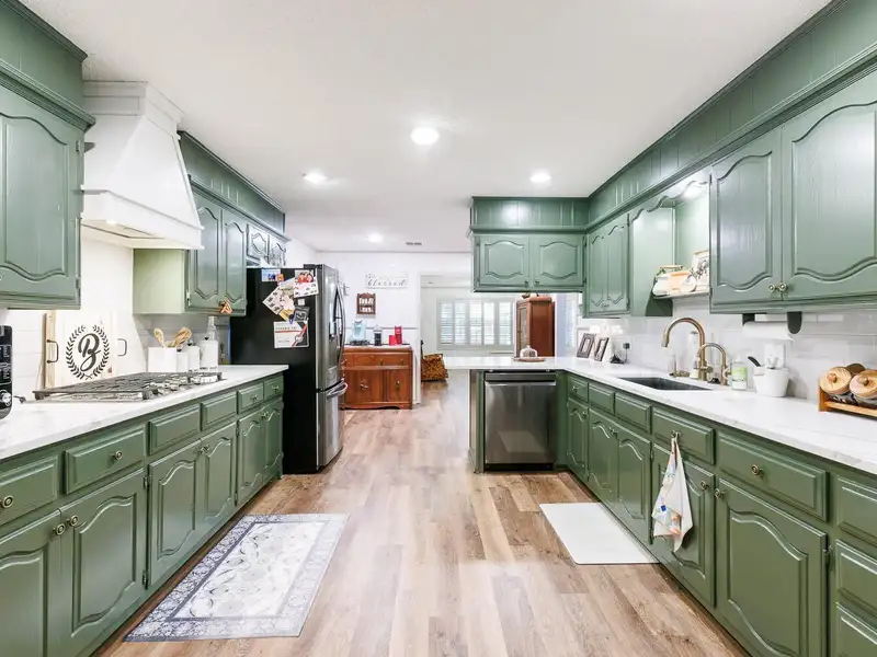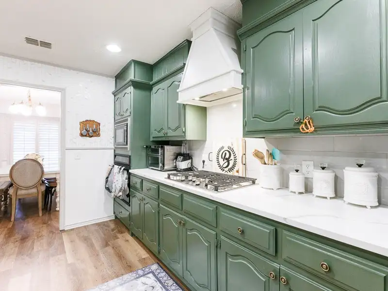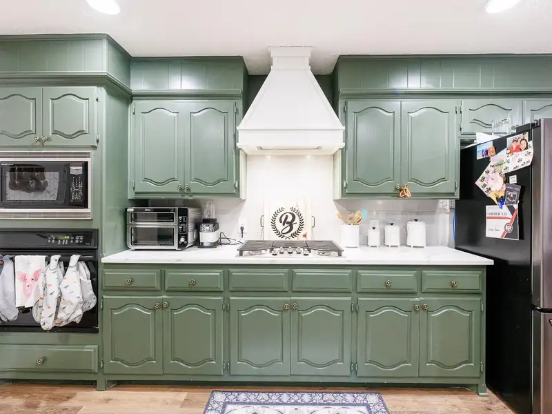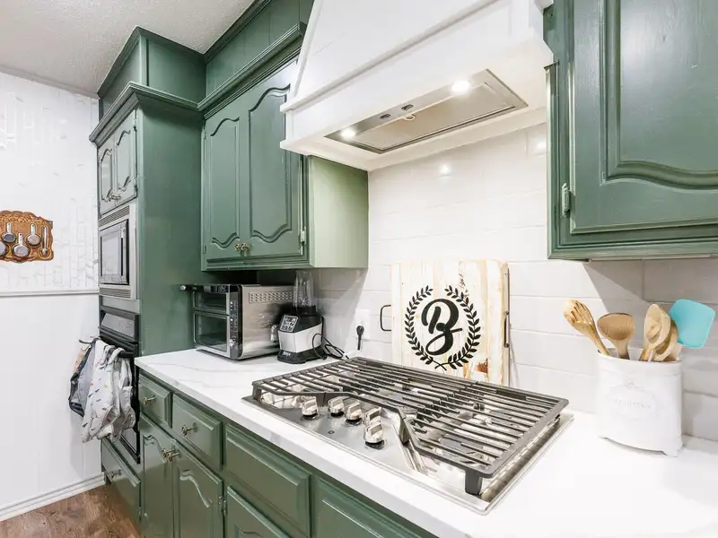 - Updated kitchen with bold cabinets