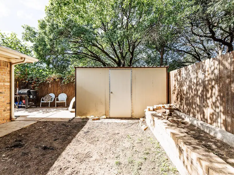 - Large yard with storage building