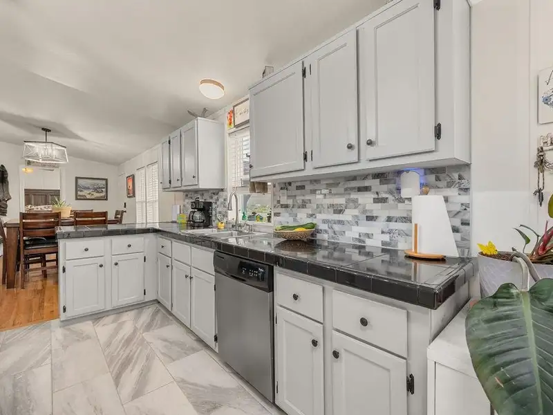 - Modernized kitchen with stylish tile backsplash