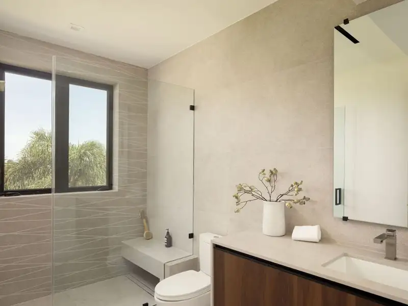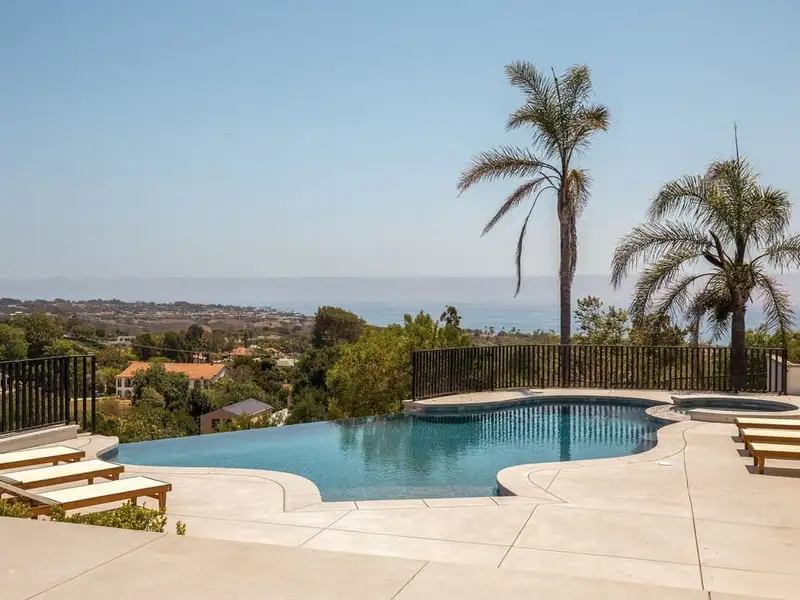 - Infinity-edge pool with waterfall and hot tub