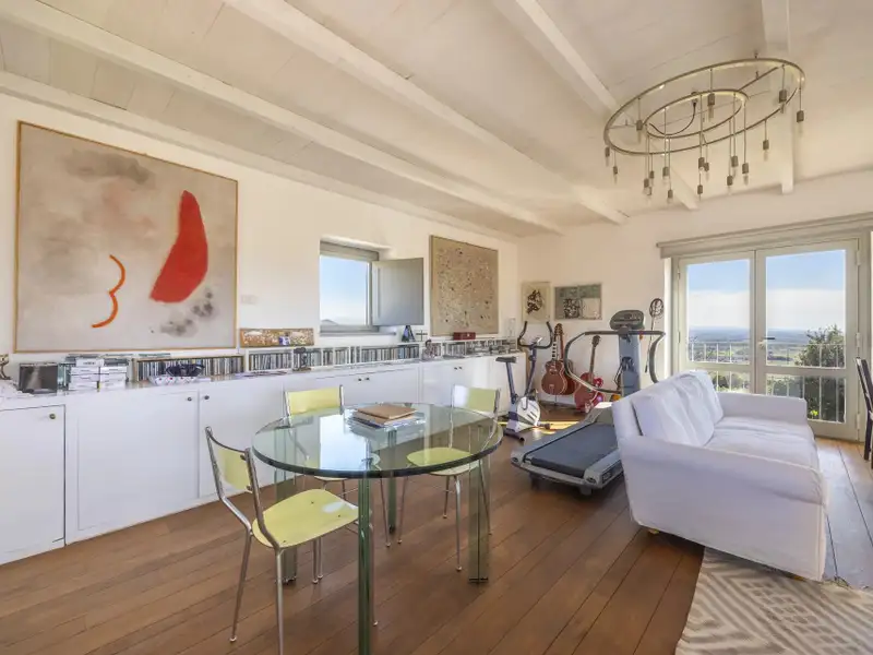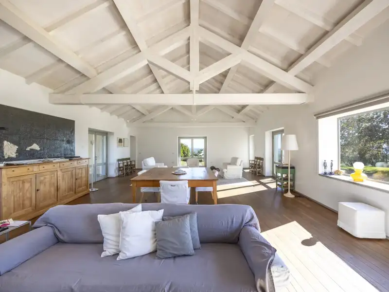 In one of the most authentic and unspoiled landscapes of Tuscany, among the gentle Maremma hills and just a few kilometers from Capalbio, stands this extraordinary villa, nestled within an enchanting olive grove. A residence that captivates with its dominant position, offering breathtaking views of the sea and the island of Giannutri: a panorama that changes color throughout the day, glowing fiery red at sunset.