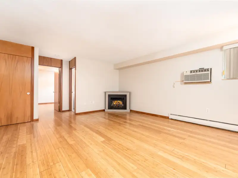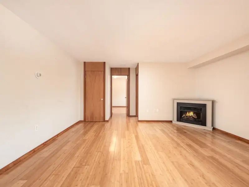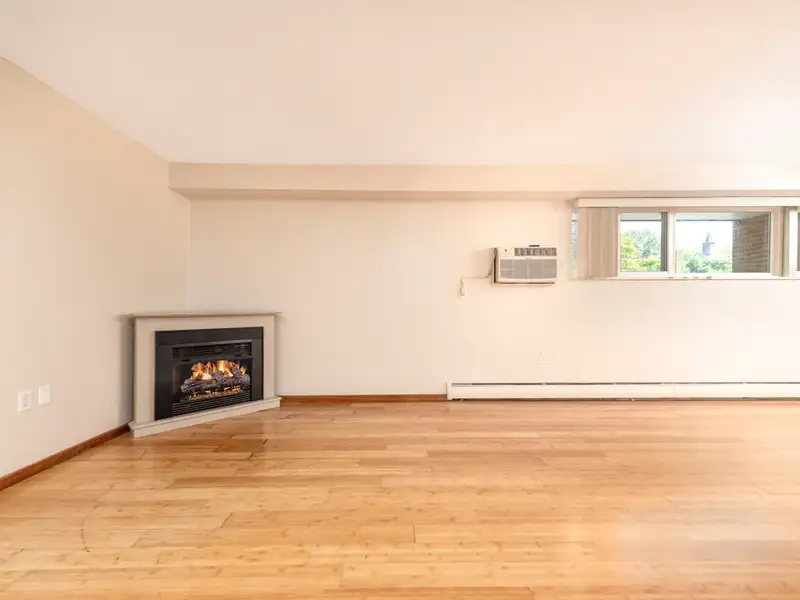 - Electric fireplace included