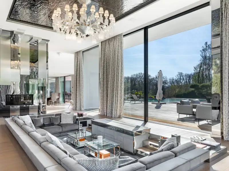 Nestled in the heart of Terre-Sainte, in the village of Mies, this villa is a true architectural masterpiece, blending modernity and conformity, luxury and serenity. Built in 2020, this luxury property offers no less than 2,000m2 of living space, boasting 9 bedrooms, 10 bathrooms, a large living and dining room, two kitchens, a fitness room, spa, home cinema, lounge areas and an underground garage for up to 10 cars. Every material has been carefully selected to make the premises prestigious and of the highest quality, such as Italian marble for the bathrooms, or leather for the walls of each bedroom and living room. Luminous and generous, each space has been designed to make you feel comfortable, as if in the tender, pleasant cocoon of a home all your own. The exteriors are equally sumptuous, with a terrace divided into three sections, in front of the jacuzzi, the pool and the relaxation and dining area. The plot, over 8000m2, is perfectly south-facing and enjoys optimum sunshine all day long. Located between Geneva and Nyon, Mies is one of Terre Sainte's most sought-after villages, offering an idyllic living environment combining nature, tranquility and accessibility. Just 15 minutes from Geneva and its airport, it enjoys an ideal geographical location, well served by public transport and close to major roads. The village boasts a modern infrastructure on a human scale: elementary school, crèche, sports fields and a dynamic community network. Mies is a sought-after village, discreet but popular, offering a rare balance between green living and urban connections. It's a place where people choose to settle for the quality of life, the charm of its surroundings and the serenity it inspires.