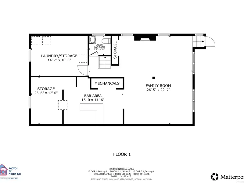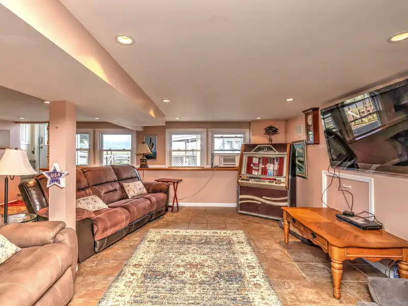 - Lower-level family room with bar area