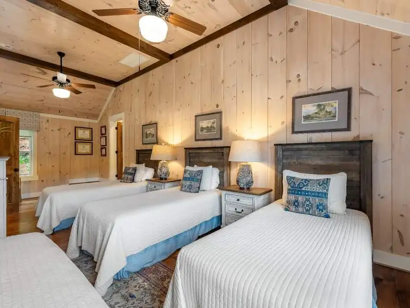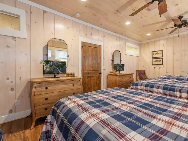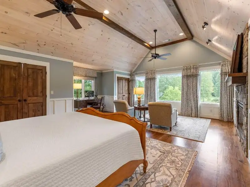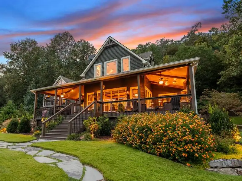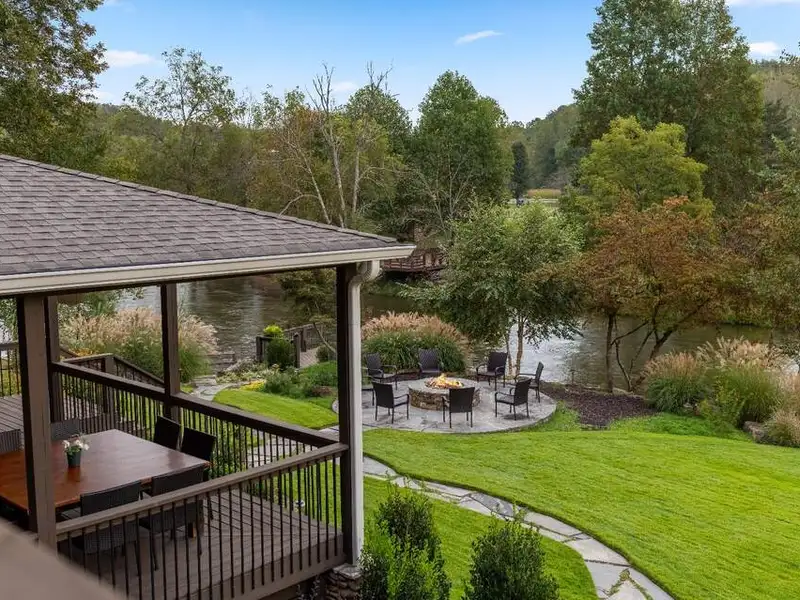 - Large covered porches and riverfront deck