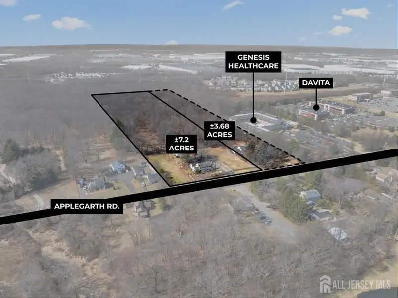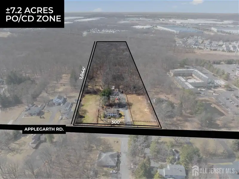 FOR SALE: 7.2 Acres of Land on Applegarth Rd. This commercial property is located in a highly sought after section of Monroe Township, just minutes from Forsgate Drive, the NJTP Exit 8A, and expansive residential communities such as Clearbrook, Rossmoor and Concordia. The property is Zoned: PO/CD (Planned Office Commercial District). This zoning allows a range or permitted uses such as: Professional Office Related Uses Such As: Corporate Centers, Data Processing Facilities, Computer Centers, Law and Accounting Offices, Research Offices, etc. Medical Uses: Doctors Offices like Family Practice, Urgent Care, Nephrology, Cardiology, Podiatry, Spine and Wellness, Physical Therapy, Orthopedics, General Dentistry, Orthodontist, Adult Daycare, Special Needs Day Program, Counseling and Therapy, etc. Retail Uses: Restaurants, Banquet Halls, Pharmacies, Banks or Financial Institutions. Sports and Health Facilities: Tennis Centers, Racquetball Centers, Health Spa, Swim School, Training Facility, etc. The prime location makes it ideal for any Medical Group looking to build their own building and establish a practice in a desirable location in Monroe Township. Also ideal for any buyer looking to build and open a restaurant and banquet hall. Finally, it is ideal for a multi-use sports and recreation facility. The adjacent 3.68 Acre property is also for sale which can be added for an additional 150' of frontage, bringing the total frontage to 450'. Please see https://www.loopnet.com/Listing/288-Applegarth-Rd-Monroe-Township-NJ/33828499/ The total acerage of the two parcels together is: 10.88 Acres. Real Estate Taxes: $11,719 per year Property is 300'x1,044' Property has City Water and Gas. Sewer available at the Street. Currently Improved with a Commercial Office Building, A Smaller Office Building and a Separate Garage/ Barn with parking lot. (Please arrange appointment in advance to visit the property) Please call Broker for more information.