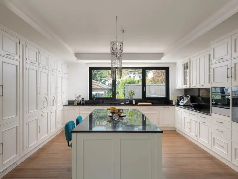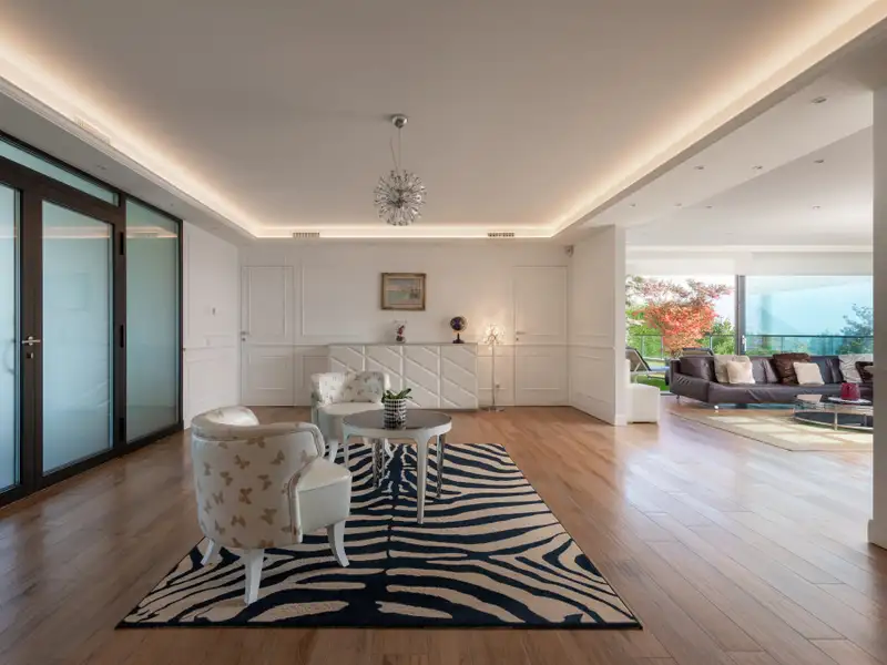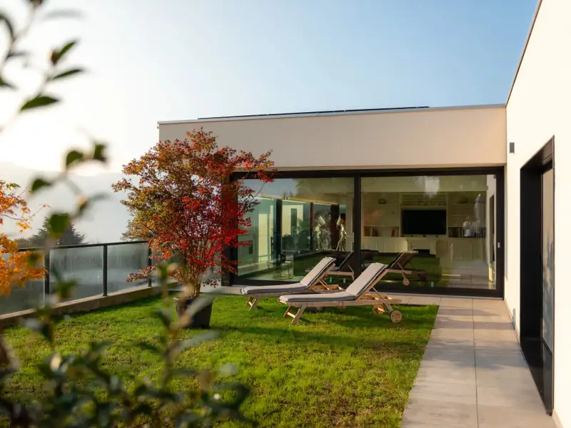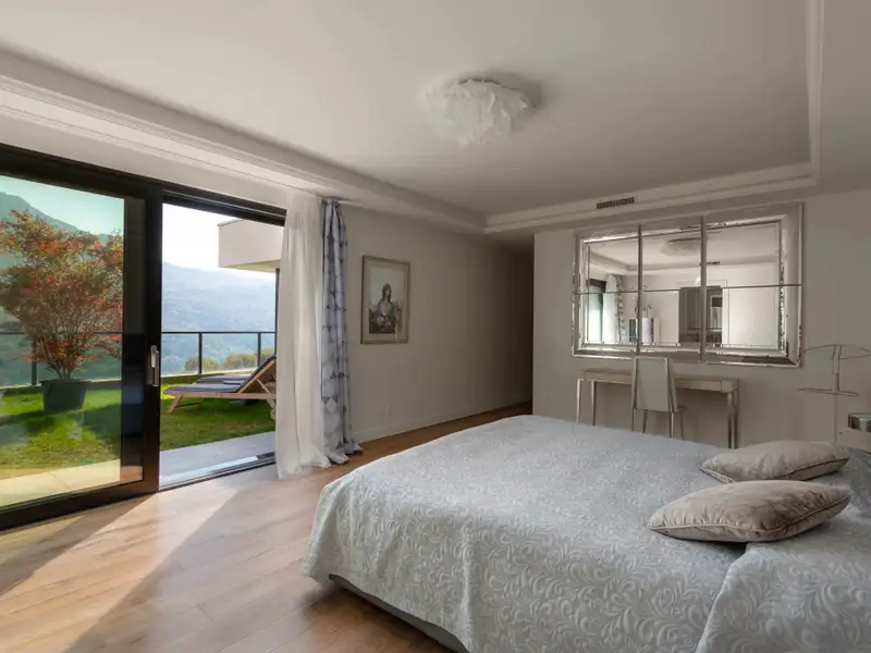 Nestled in the heart of Collina d'Oro, just a short walk from the prestigious TASIS International School, this residence embodies a rare blend of elegance, comfort, and natural light. Every space is designed to offer harmony with the surrounding landscape, combining privacy, wellness, and refined living.On the ground floor, a spacious and elegant entrance hall with a guest bathroom leads to the main living area, where the living and dining rooms open directly into the garden through large windows, bathing the interiors in light and offering a splendid view, the perfect setting for family gatherings or serene evenings with friends.The kitchen, fully equipped and featuring a generous central island, serves as the heart of the home. Ideal for family breakfasts or informal moments, it offers ample space for a dining table of six, leaving the main dining area for special occasions. A convenient dumbwaiter connects the lower level, making it easy to transport groceries and beverages.The same floor hosts two bedrooms, each with its own en-suite bathroom, and a versatile hobby room perfect for use as a playroom, or creative space. The master bedroom, bright and spacious, includes a bathroom with a bathtub and direct access to the garden, while an adjoining study with wardrobe and private bathroom provides an ideal retreat for work or reading.As you move towards the lower level, a stunning original sculpture by Nag Arnoldi, valued at approximately CHF 300,000, graces the stairway landing, adding a unique artistic touch that enhances the property's sophistication and character.The lower floor opens to a true wellness sanctuary. The indoor heated pool with direct garden access and shower area invites relaxation in a bright, serene atmosphere. The fitness room, separated by a long glass wall, allows one to exercise while overlooking the pool, and the SPA area with sauna, steam bath, and whirlpool offers a private haven for body and mind.This level also features a self-contained apartment with living room, kitchen, bedroom, and bathroom, perfect for guests or staff, as well as a private cinema room for exclusive entertainment. Service areas such as a laundry room, technical space with structured cabling, and an internal garage complete the lower floor.Surrounded by the lush landscape of Collina d'Oro, the property offers a lifestyle immersed in nature, culture, and tranquility. Picturesque walking trails, fine dining, and cultural landmarks such as the Hermann Hesse Museum in Montagnola create a setting where leisure, sophistication, and well-being merge seamlessly.Living here means embracing a life where nature, art, and elegance coexist in perfect harmony, with the convenience of TASIS just a few minutes away and the refined quality of life that defines the Ticino region.