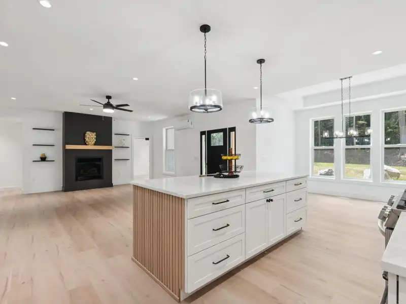 - Open kitchen with quartz countertops