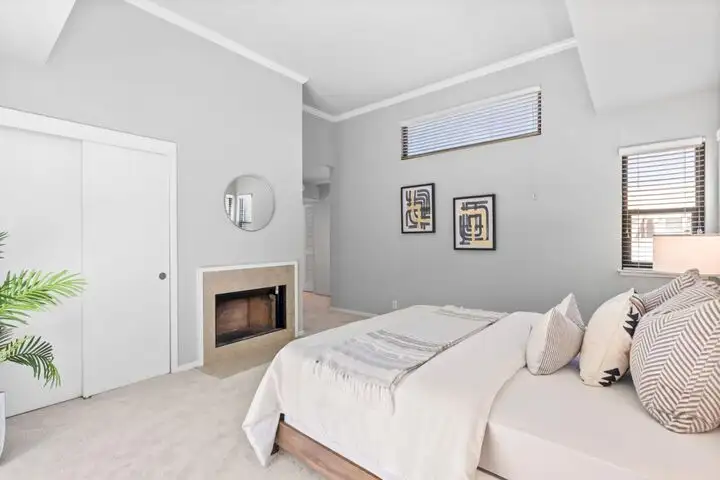 - Primary suite with vaulted ceiling and fireplace