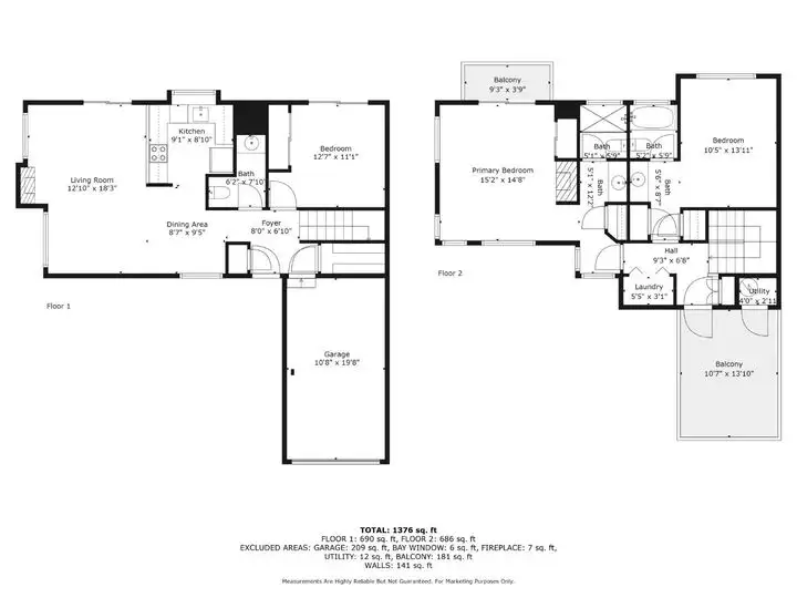 - Semi-private balcony above garage