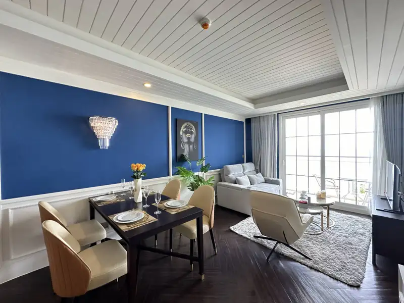 - Open-plan living and dining area