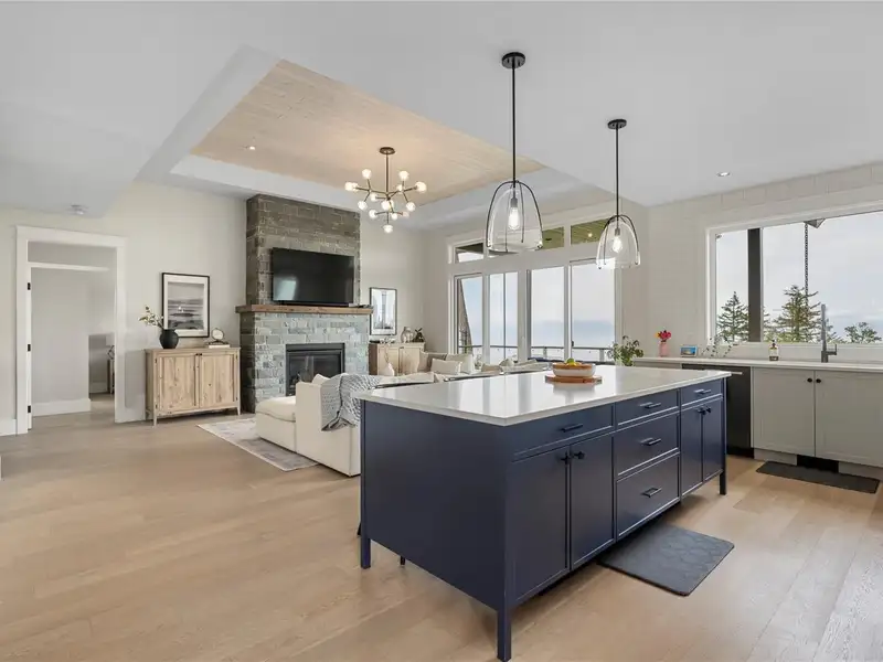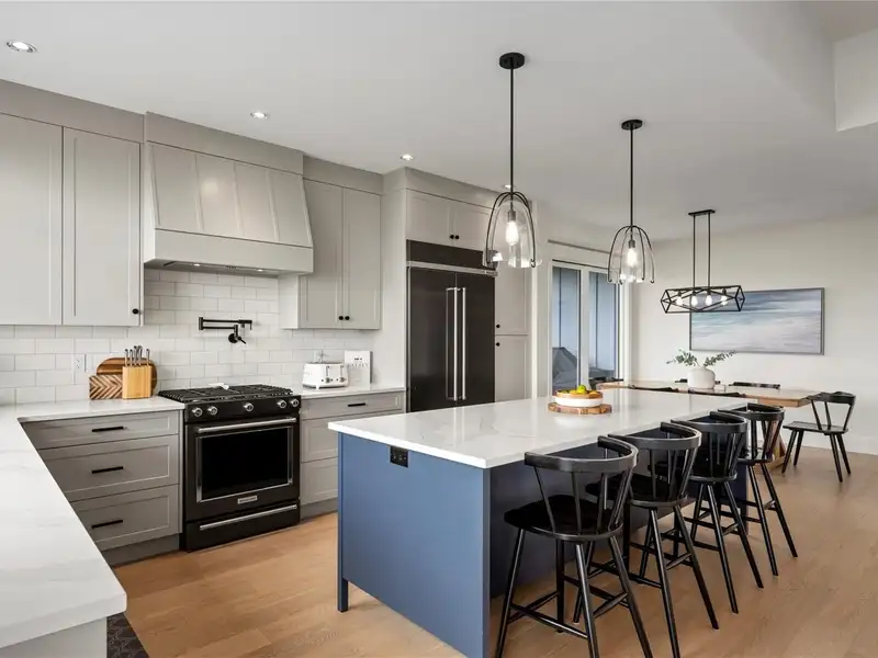 - Large quartz island kitchen