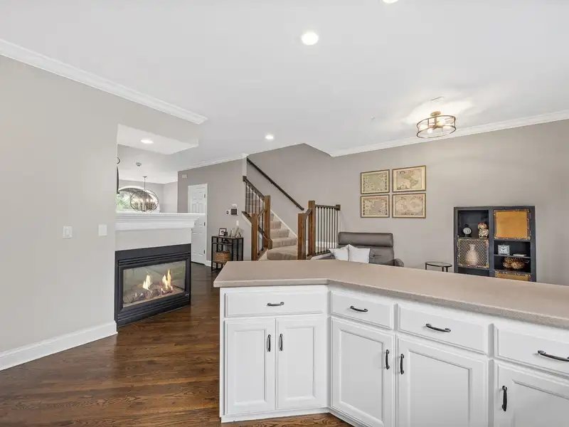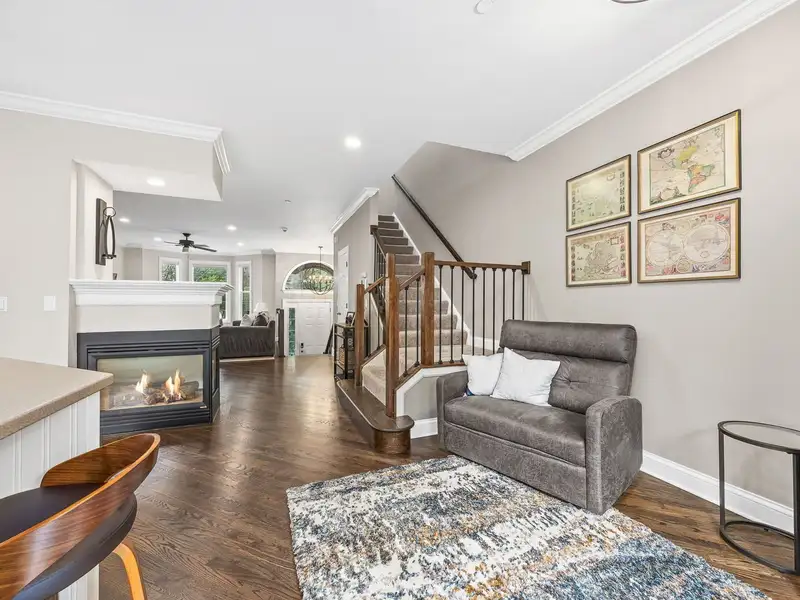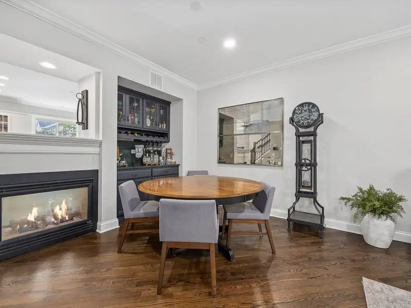 - Three-sided gas fireplace and bar area