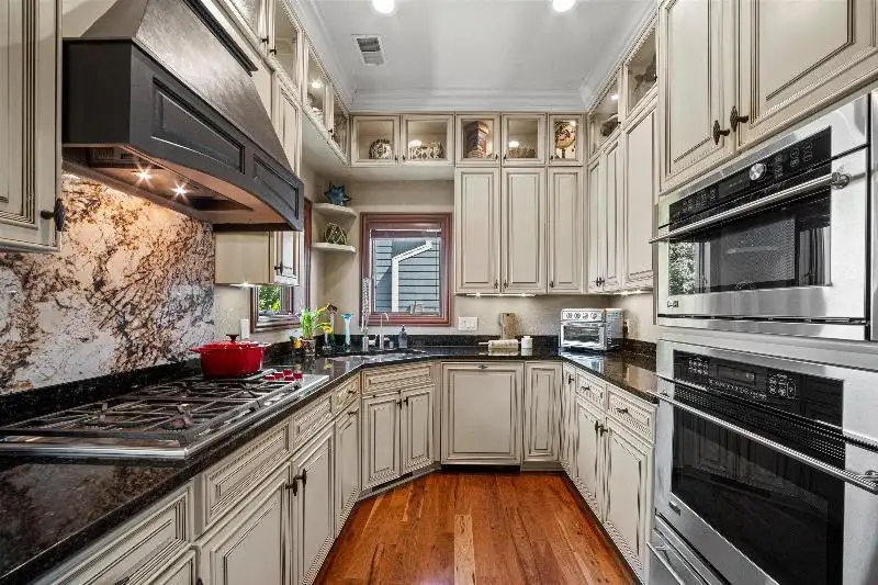 - Kitchen with custom cabinets and updated appliances