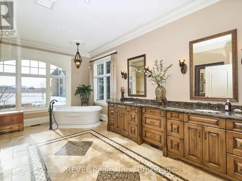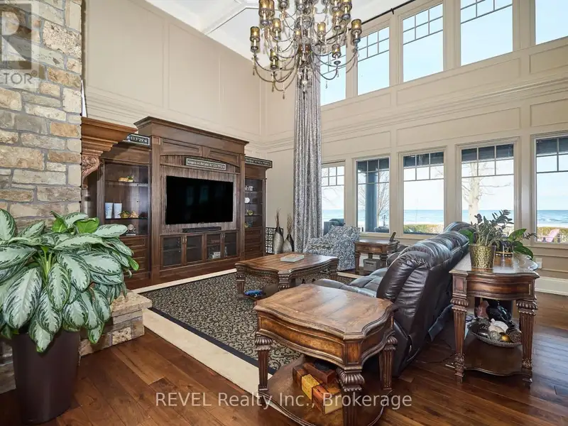 Exclusively positioned on nearly 13.4 acres of pristine land, this stunning luxury estate boasts nearly 500 feet of Lake Ontario shoreline with breathtaking views in Niagara-on-the-Lake. The property features a gated .5KM driveway flanked by meticulously maintained vineyards, leading to a masterpiece of design and construction. No detail has been spared in the creation of this unparalleled home, showcasing the finest materials, cutting-edge technology, and craftsmanship of the highest order. Enjoy resort-style living with a private pool, tennis courts, and a 4466 sq/ft bonus building, including 1936 sq/ft of finished space with 2 bathrooms. A state-of-the-art generator ensures uninterrupted power, while the dock and boat lift offer easy access to the lake. Experience the finest in both comfort and elegance at this exceptional waterfront retreat. (id:7434)