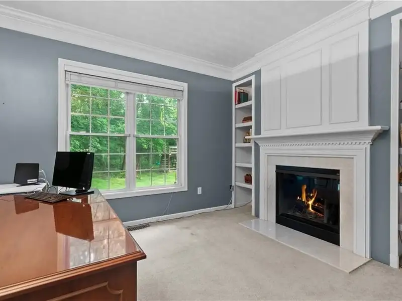 - Private office with fireplace and bookcases