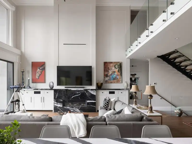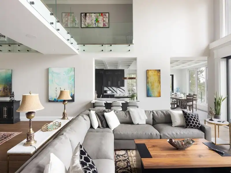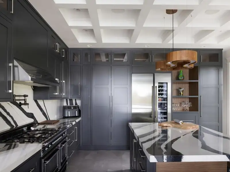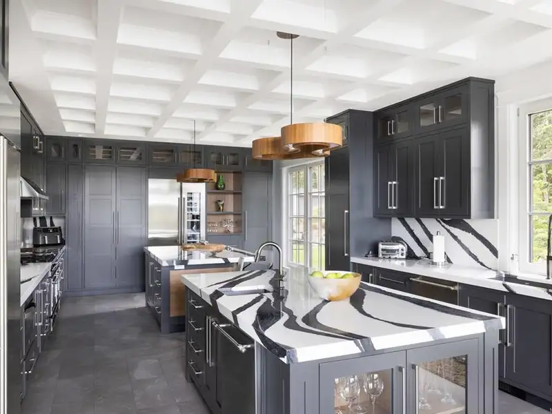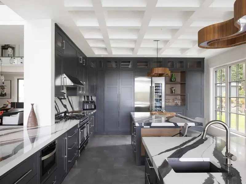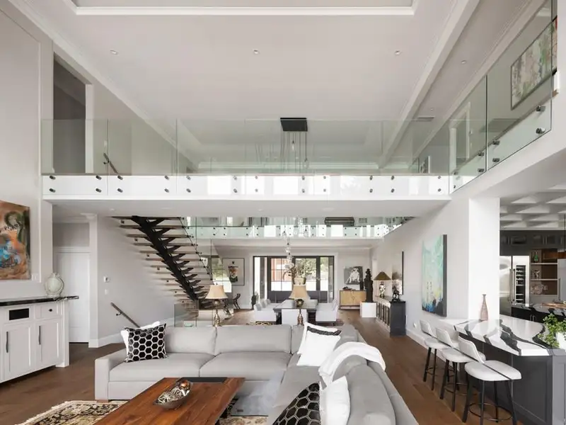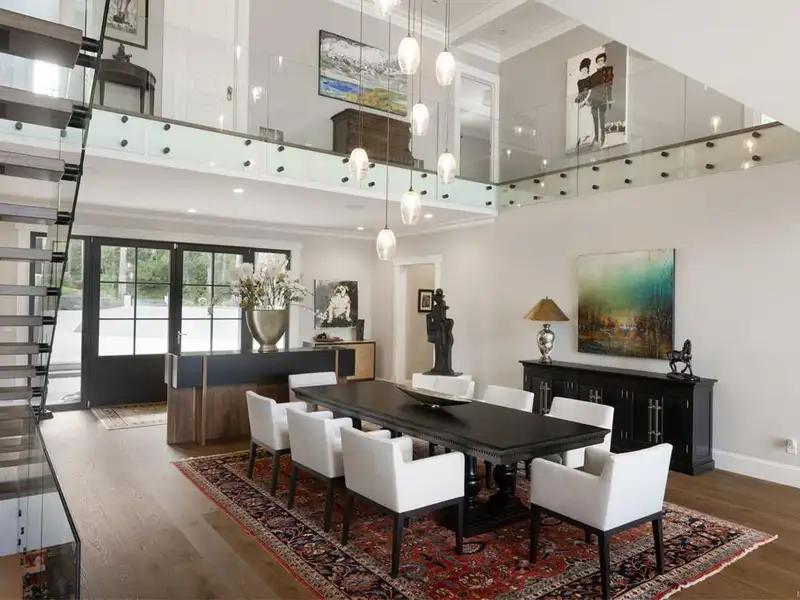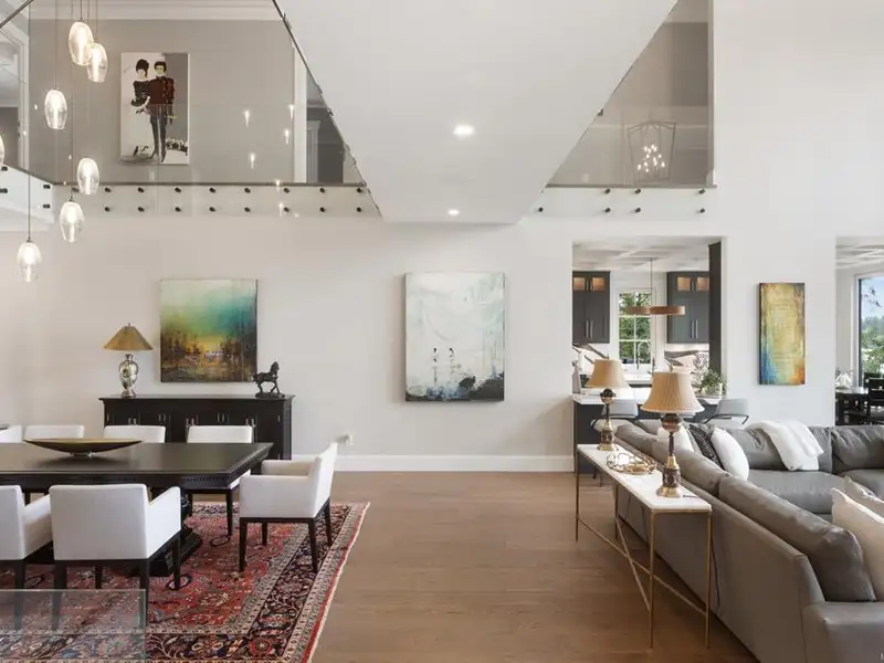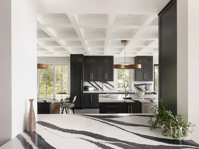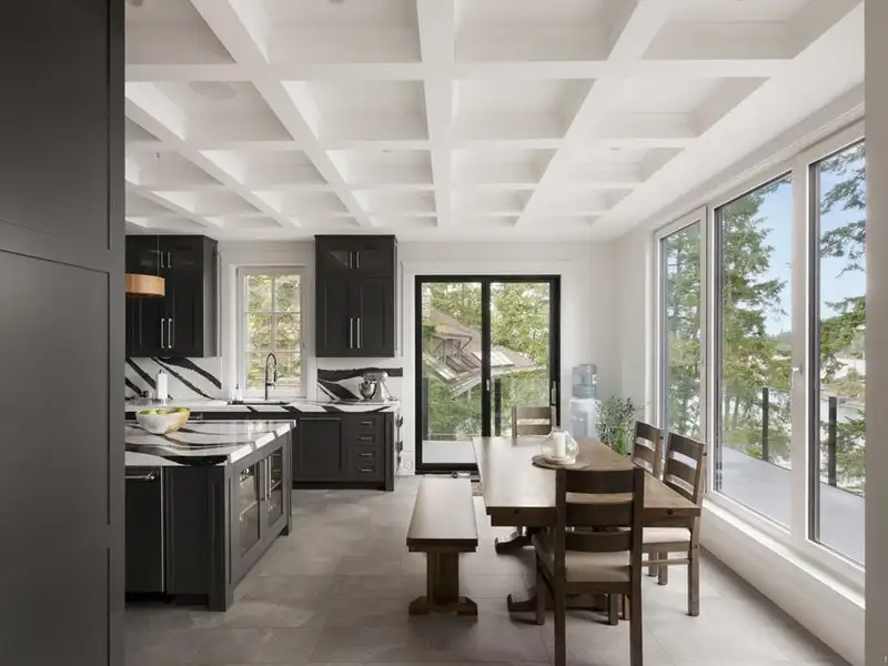 - Soaring 22-ft coffered ceilings