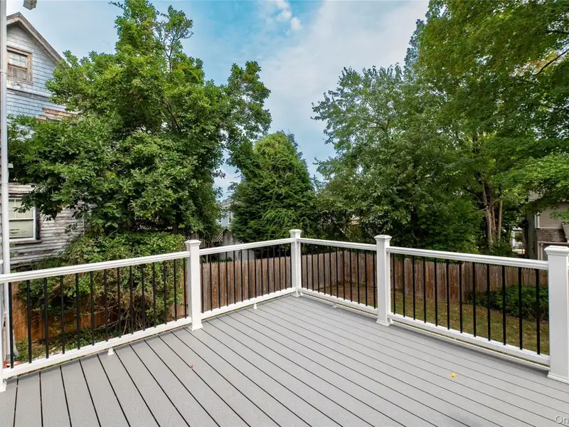 - Back deck overlooks large yard