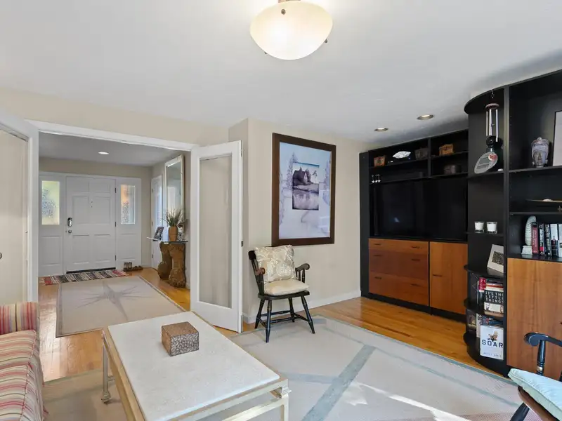 Impressive four-bedroom home with a distinctive floor plan that combines privacy, comfort, and convenience in one of Oak Bluffs' most desirable locations. The main living area, filled with natural light and soaring ceiling, offers an open layout that is warm and inviting. A third floor den and exterior decks on all levels provide ample living space both indoors and out. Set within the sought-after Meadow View Farms community, residents enjoy access to beautifully maintained common meadows, as well as association tennis and pickleball courts. The neighborhood's peaceful setting fosters a true sense of community, while its prime location, just off the bike path, places Farm Neck Golf Club and all downtown attractions, within easy reach.