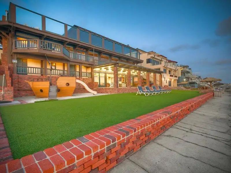 ONCE-IN-A-LIFETIME Beachfront Opportunity-100 Feet of Oceanfront Living! Welcome to your dream estate--pristine beachfront, over 6,700 sq ft of living space & a 16,000+ sq ft lot designed for ultimate relaxation & entertainment. This rare oceanfront property features 7 bedrooms, 6 bathrooms & three full kitchens--one on each level--making it ideal for multi-generational living or large-scale entertaining. Step through the front door & be greeted by a dramatic staircase leading down to the expansive Primary Suite & oversized living room. Just off the main entry, you'll find a private office, guest bedroom & full bath, perfect for guests or a home workspace. The office features stunning ocean views & opens to a large private patio. On this main level, enjoy 3 more bedrooms-one is ensuite, 2 baths, a spacious dining room, sitting area & a full kitchen w/ eat-in bar. From here, step out onto an oversized patio or take the private beach access stairs down to the sand--or simply ride the elevator for convenience. Up a charming winding staircase from the kitchen is a cozy maid's quarters with its own Oceanview deck, providing a peaceful retreat. The 2nd level features the Primary Suite with a private balcony, two separate bathrooms, dual walk-in closets, and a dressing area that opens to an additional outdoor space. The adjacent living room is massive, perfect for family gatherings, and showcases the Pacific Ocean through walls of glass. A second kitchen and wet bar complete this level, with a nearby laundry room for convenience. Head to the beach level & you'll find an entertainer's paradise! This floor boasts a third kitchen, huge bar, shuffleboard table, full bathroom w/ two showers, a fun bunk room & direct access to the beach. Step outside to a sprawling patio, giant turf play area, sandbox w/ a custom wooden pirate ship & your very own private boardwalk with steps leading directly to the sand. Own your own slice of oceanfront paradise!