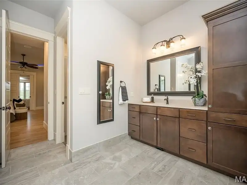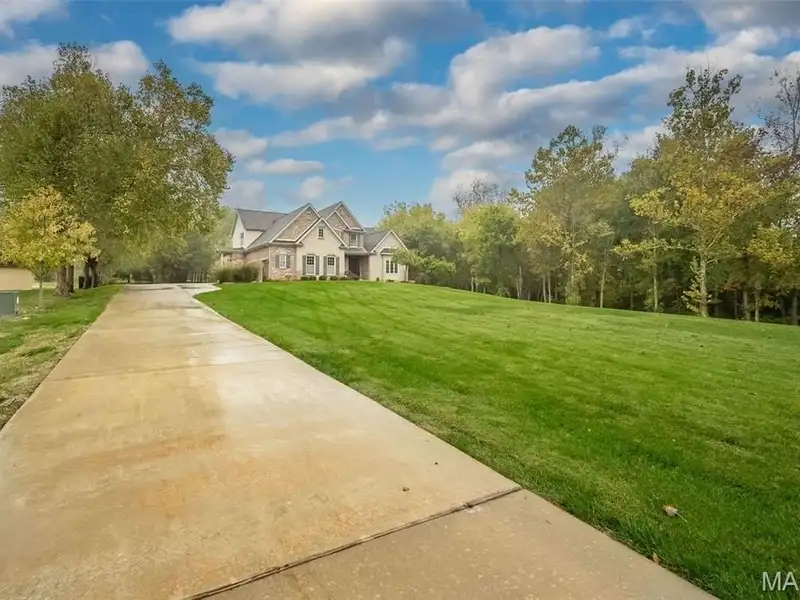 The Birchwood at Bates Bend - This site is in the prime location of Dardenne Prairie and is the Builder's personal residence. The Estate Lot is 1.8 Acres with an irrigated and pampered lawn where the residence is positioned 250 feet from the road for a grand approach and free of HOA rules. Destined for parties for a crowd or just impromptu fun. The front meadow is ready for wedding tents, family soccer tournaments and a future pickle ball court could easily be in your dreams for the rear extensive lawn area. The long driveway becomes the Red Carpet for any event. All that is missing is the paparazzi! *****The Inspiration of the Birchwood Residence was a collective effort of Architect Larry Spraul of LR Spraul Designs, and Custom Builder Tim Griffey of Griffey Custom Homes. The overall theme was to incorporate three loves: “The love of the outdoors”, “Comfortable, yet dramatic spaces”, and “The celebration of fine craftsmanship” that is displayed throughout the home. The inspiration and careful direction of the concept resulted in a special home to share with family and friends, from small gatherings to large memorable events. So many memories are awaiting….. The positioning of the structure led to the creation of several exterior zones: The large meadow has been home to pampering all guests including the 2 resident labs who have worn out the owners with their mastery of “Fetch”. You could also evolve into a skilled “referee” for family football and be rewarded with a whistle to control the crowd. The aluminum fenced rear yard has proven to keep the 4-legged residents and a herd of wild grandchildren corralled and is large enough to have court sports and a pool. .......The yard flows to the right of the home to a private patio area from the walk-out lower level with an additional 2,361 square feet of high ceiling spaces to ignite your imagination. When the pups and kids are coated with the remnants of their outdoor fun, the Family Entry has a pet and people shower center for their re-entry into the pampered world of the interior. The Family Entry contains the perfect drop zones, the Expansive Laundry Center and quick Powder Room access. The finishes are exceptionally executed in every area of the home. From the Main Entry you have a sense of what lies within. The Main Level features 10-foot Ceilings, 8 Foot Doors, and job finished hardwood floors throughout the public spaces and owner’s private spaces. The craftsmanship begins with sleek box beamed ceiling treatment, architecturally correct window surrounds featuring transoms with cross head crowns and 8-inch base trim. The design is sleek and sculptural, with details that will easily embrace a traditional to a polished contemporary setting. This is not a vanilla box by any means. Every corner, every view, leaves something to be discovered. The East Wing of the Main Floor is dedicated to pampering the Owners at every turn. There is no fighting over closet space with two primary custom closets and a place for every shopping treasure. The Bedroom contains a large salon setting with fireplace and pocket doors that lead to a flex space with a breath-taking soaring hardwood ceiling. The owners used the space for a home office, but it could easily be a private den or library. The Owner’s Suite features every item the resident royalty would demand. The shower has room for a crowd, and the acoustics could be perfect for your morning American Idol rehearsal. The large lounging tub overlooks your wooded backdrop. You may be tempted to bring a towel. Review the extensive photography for a complete understanding of what this property offers: An Open Concept that captures the views and flows from Great Room, Private Dining Room, Family Dining, an Island that seats 8 comfortably, a fireside Hearth Room, a Kitchen that has everything including a walk-in butler pantry. Every space gives you the feeling of walking through a magazine. Owner is a licensed agent. Enjoy!!!