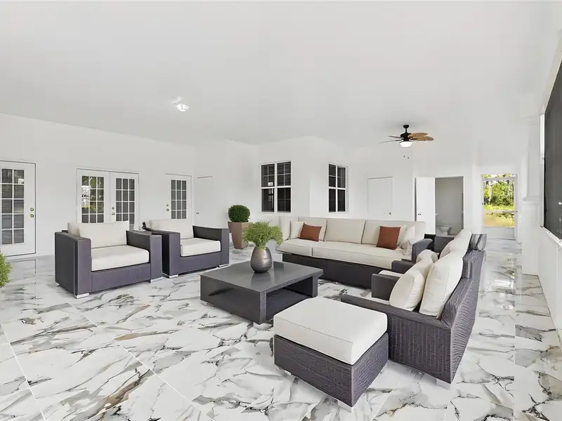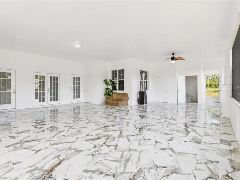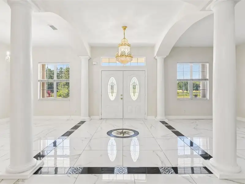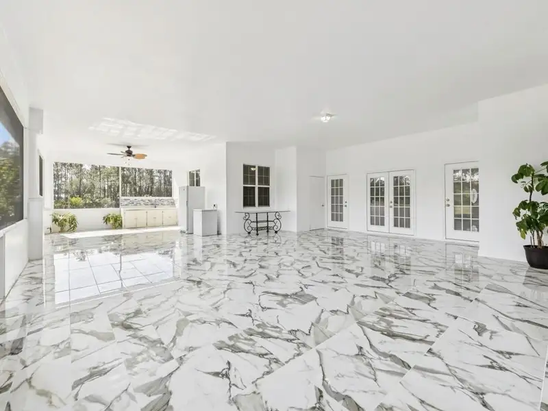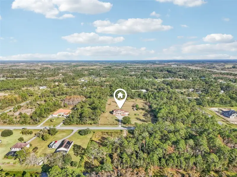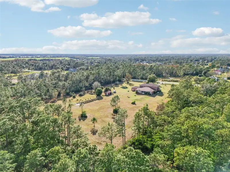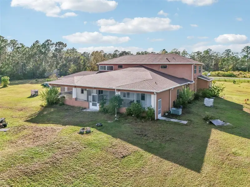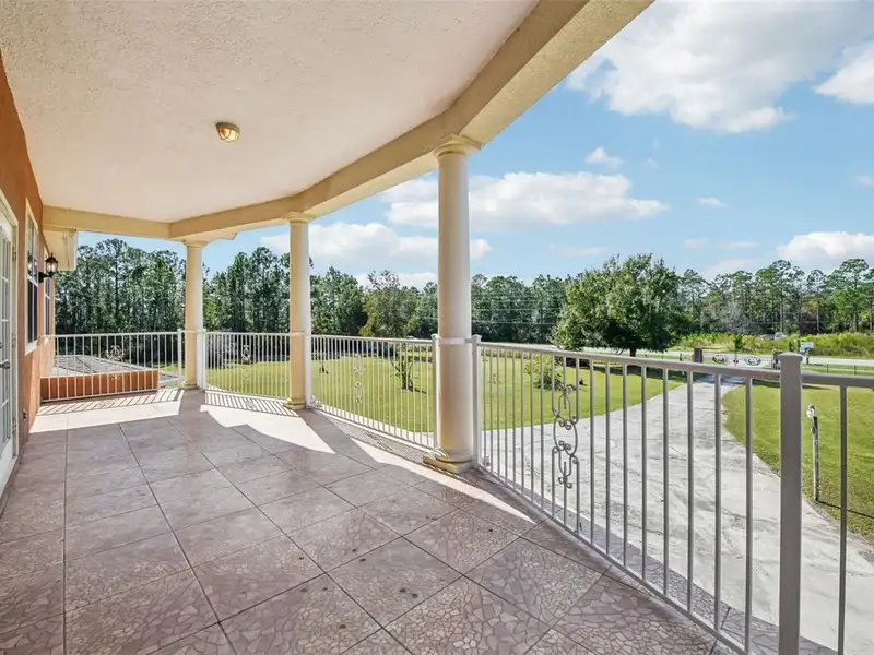 One or more photo(s) has been virtually staged. Dreams do come true! Welcome to your private slice of paradise in Wedgefield! This impressive custom-built estate offers over 5,000 square feet of living space with 6 bedrooms and 6 bathrooms, beautifully set on 4.77 acres and zoned A-2, so you can bring your horses, goats, chickens and more. Built in 2004 and well-maintained, this property blends peaceful country living with modern convenience and community amenities, including an 18-hole golf course, playgrounds, sports courts and nearby Hal Scott Preserve for hiking, biking and nature lovers. A 5-foot wrought iron fence spans the 360-foot front yard with a 20-foot wrought iron electric gate and pedestrian gates on either side, while the rest of the property is enclosed with 5-foot wire fencing- ideal for animals and added privacy. The enormous front and back yards are perfect for play, gardening, entertaining and enjoying the quiet setting, and the 288 sq. ft. Tuff Shed provides excellent additional storage. Step up to the Shark Coating front porch and through the double-door entry into a grand foyer that sets the tone for the rest of the home. Gorgeous inlaid porcelain tile flows throughout the first-floor living areas, and arched vaulted ceilings add volume and elegance. To one side of the foyer is a welcoming sitting room, and to the other, a formal dining area ready for large gatherings. The spacious, open kitchen anchors the main level with granite countertops, a granite breakfast bar, recessed lighting, abundant cabinetry and a huge walk-in pantry. The open concept layout connects all the spaces, giving you endless options for arranging living, dining and entertaining spaces to suit your lifestyle. On one side of the main floor you will find a guest bedroom with its own private bathroom featuring a Jacuzzi tub with shower - great for visiting guests or multi-generational living. The opposite side of the home hosts two individual office spaces, each with its own exterior entrance and one with a half bath, creating an ideal setup for remote work, home-based business, studio or hobby spaces. The main floor primary suite is a true retreat, complete with a tranquil sitting area and separate dual walk-in closets. The expansive primary bath offers a glass-enclosed shower, luxurious Jacuzzi garden tub and dual vanities, giving you a spa-like experience at home. French doors from the main living area open out to an approximately 1,100 sq. ft. screened lanai with porcelain tile flooring and a peaceful forest view. This impressive outdoor living area includes counter space with cabinets, a sink and a convenient half bath - perfect for hosting parties, enjoying quiet mornings with coffee, or relaxing after a long day without ever leaving your property. Up the grand curved staircase, a loft area opens to a balcony overlooking the front yard, giving you yet another beautiful space to relax or gather. Four additional bedrooms extend off the loft, two on each side, and each pair of bedrooms is served by a bathroom with a Jacuzzi tub and shower. One of the upstairs bedrooms features its own private sunroom, adding even more flexible living space for a reading nook, playroom, workout area or creative studio. This home is truly impressive - offering space, serenity and versatility inside and out! Come experience the peaceful setting and spectacular location for yourself. Call today to schedule your private showing an ASK US ABOUT THE ASSUMABLE VA LOAN or LENDER PROVIDED RATE BUY-DOWN CREDIT!