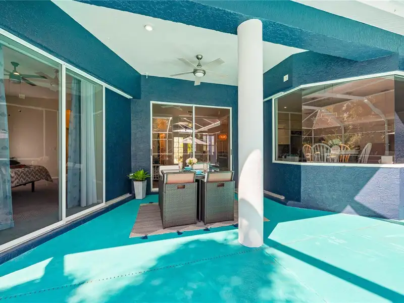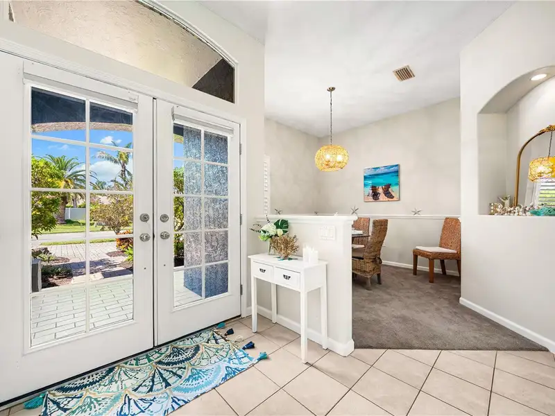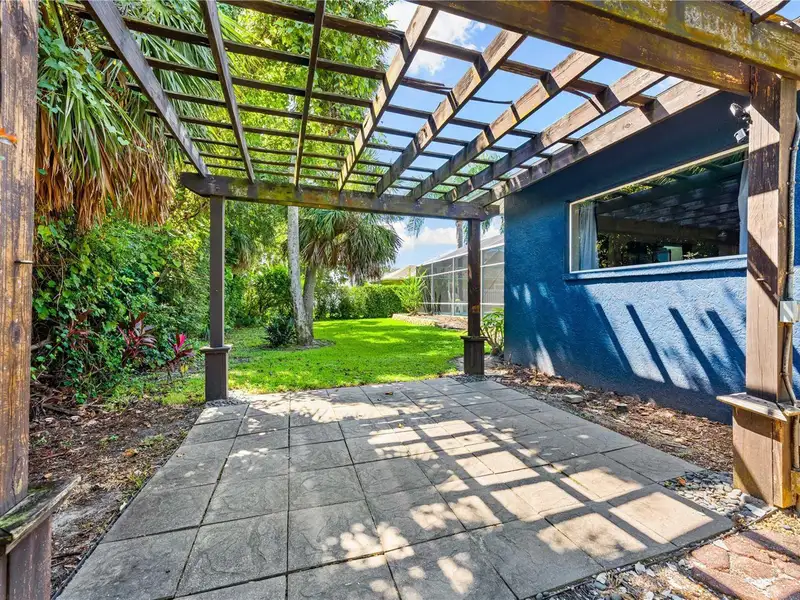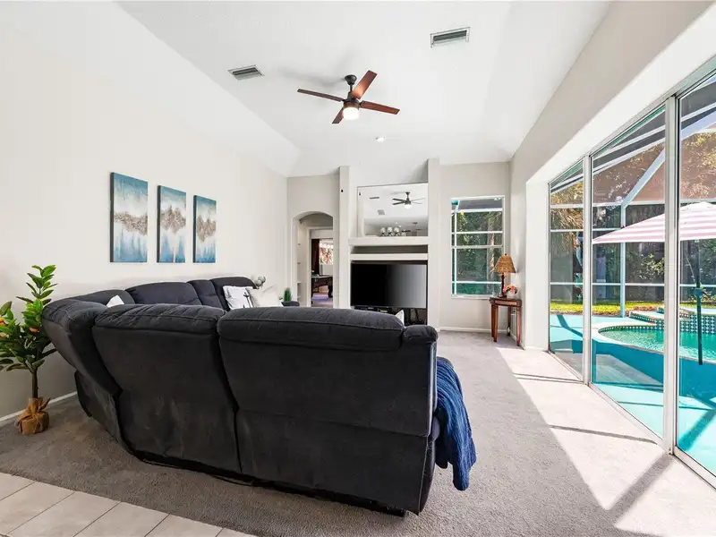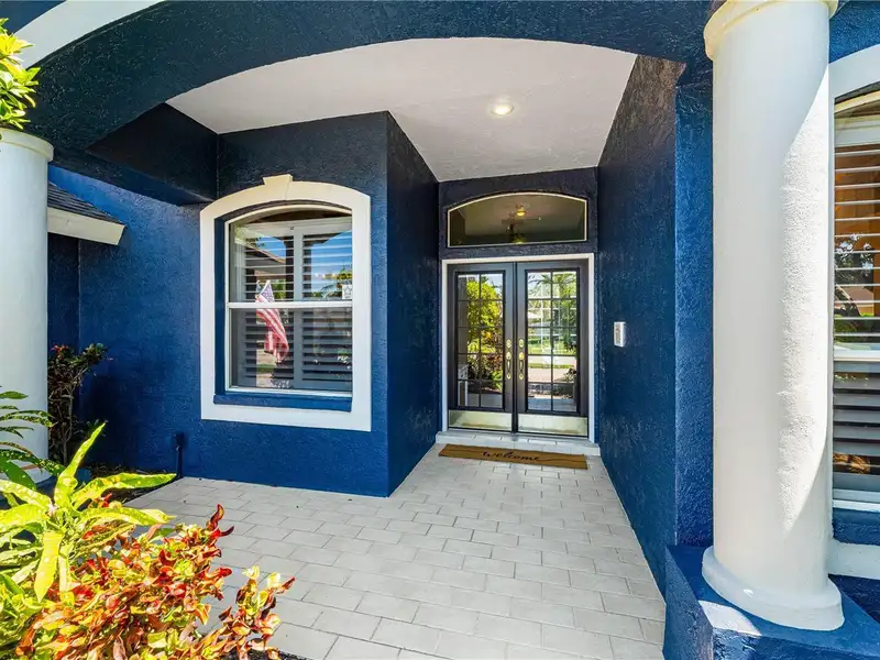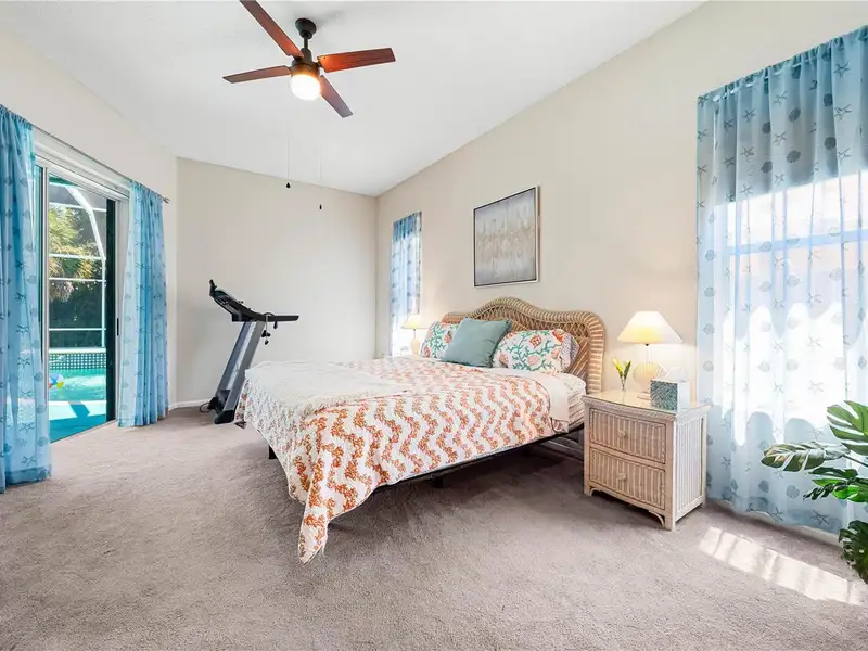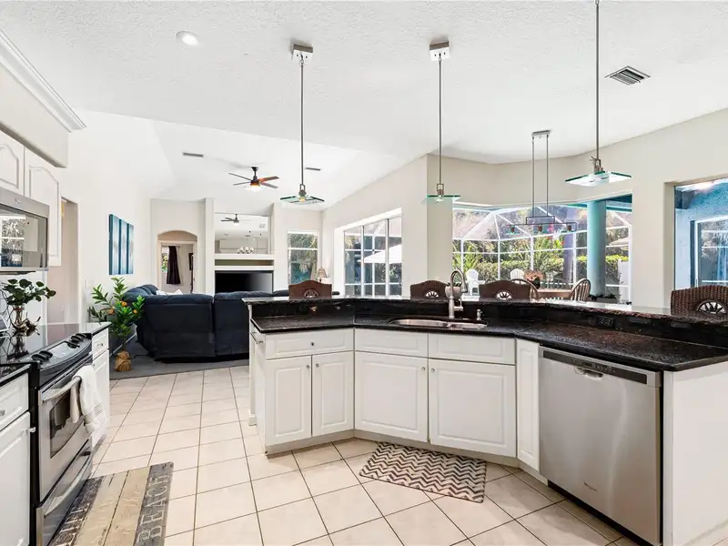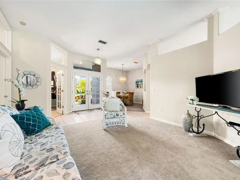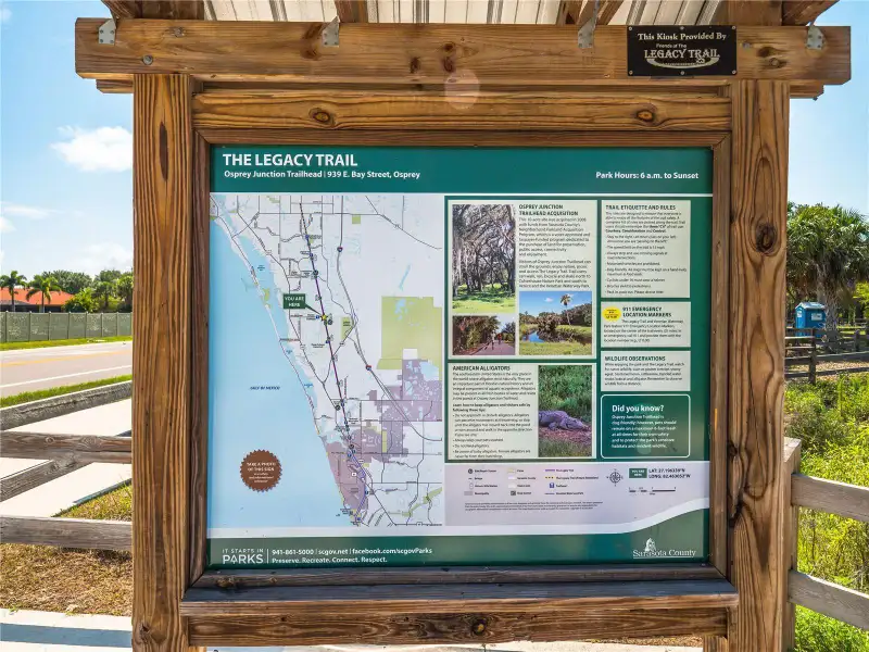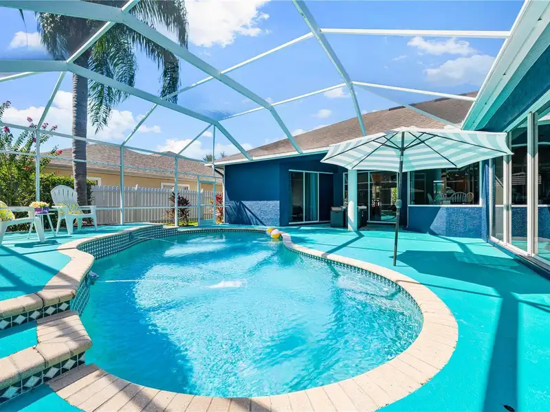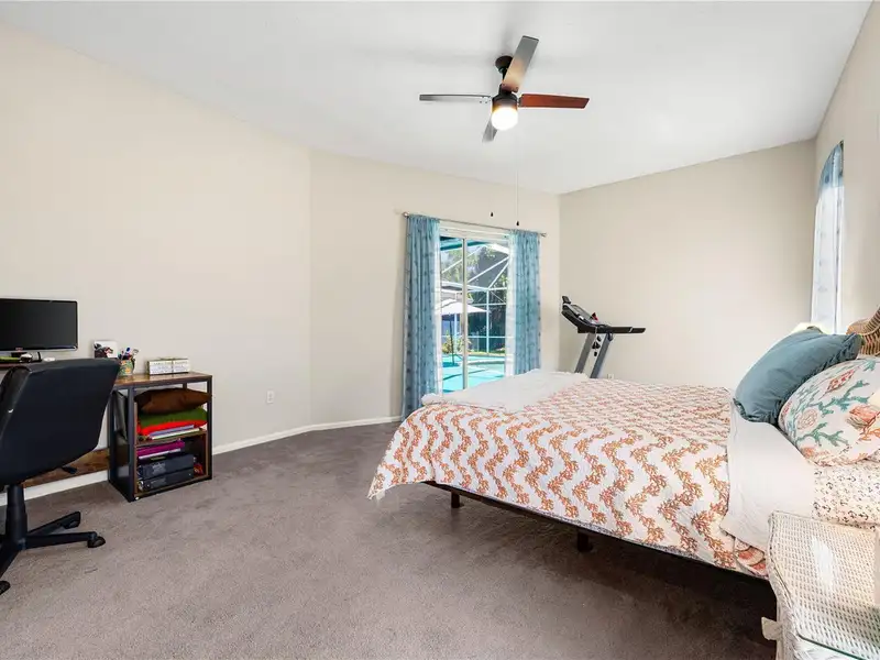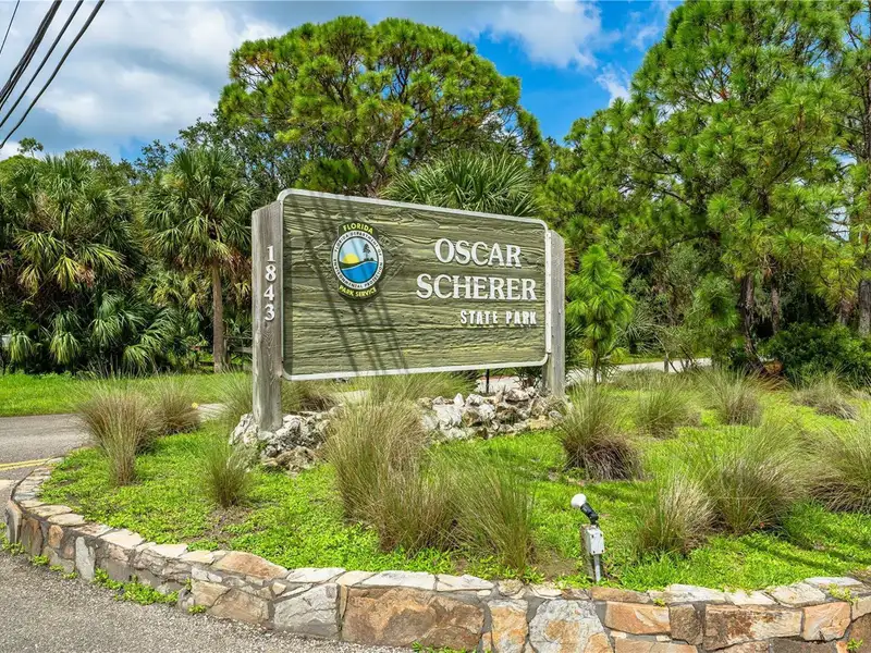 One of the largest homes in Bay Oaks Estates, this 5-bed, 2.5-bath single-story pool retreat delivers the best of indoor-outdoor Florida living with flexible spaces for guests, work, and play. Curb appeal pops with a brick paver circular drive, lush landscaping, and a covered, columned entry with French double doors and an arched transom. Inside, high ceilings and an abundance of natural light set a welcoming tone. The formal living and dining rooms flow to the heart of the home – a well-appointed kitchen designed for everyday living and entertaining, featuring granite counters, tile backsplash, stainless appliances, a center island with raised breakfast bar, closet pantry, built-in desk and wine rack, recessed & pendant lighting, and a picturesque breakfast nook with wraparound windows. The kitchen opens to the spacious family room with a tray ceiling and mirrored media niche. A pocketing three-panel slider seamlessly extends the living space to the covered lanai and screened pool; additional sliders from the formal living room, the primary suite, and a secondary bedroom maintain the indoor–outdoor connection. Out back, the lanai enjoys a private, tranquil, tree-lined backdrop, overlooking a curved, free-form pool with twin arc fountain jets, a raised sun terrace for lounging, and generous space to relax or gather. A screen door leads to the lawn and a separate pergola patio with power – perfect for morning coffee or an evening grill. From the backyard you have direct access to the Legacy Trail, the popular paved, multi-use path linking Sarasota and Venice, for miles of biking and walking through nature. The private primary retreat offers lanai access, two closets (one walk-in), and a spa-like en-suite bath with a Jacuzzi jetted soaking tub framed by an arched window with plantation shutters, separate walk-in shower with wall body sprays, a long double vanity, and a private water closet. Thoughtful split-bedroom design places three secondary bedrooms and a full bath together in their own wing (one is oversized with lanai access that can flex as a game/media space), while a full 5th bedroom – currently used as an office – sits near the primary suite. An interior laundry room adds storage shelves, cabinets, and a utility sink. Major updates for peace of mind include: replumbed water lines, roof (2015), A/C (2019), new water heater (2024), new pool pump (2024), kitchen appliances (2021), washer and dryer (2023), polycarbonate storm panels, and irrigation. All in a well-kept, low-fee, pet-friendly Osprey community conveniently located just minutes from top-rated schools, including the prestigious Pine View School, and close to the Gulf beaches of world-renowned Siesta Key, Nokomis, and Venice, as well as Oscar Scherer State Park, and a variety of shopping, dining, entertainment, and everyday conveniences; the Gulf Coast lifestyle at its finest. Schedule your private showing today and fall in love with the lifestyle that 571 Pine Ranch East Rd has to offer.