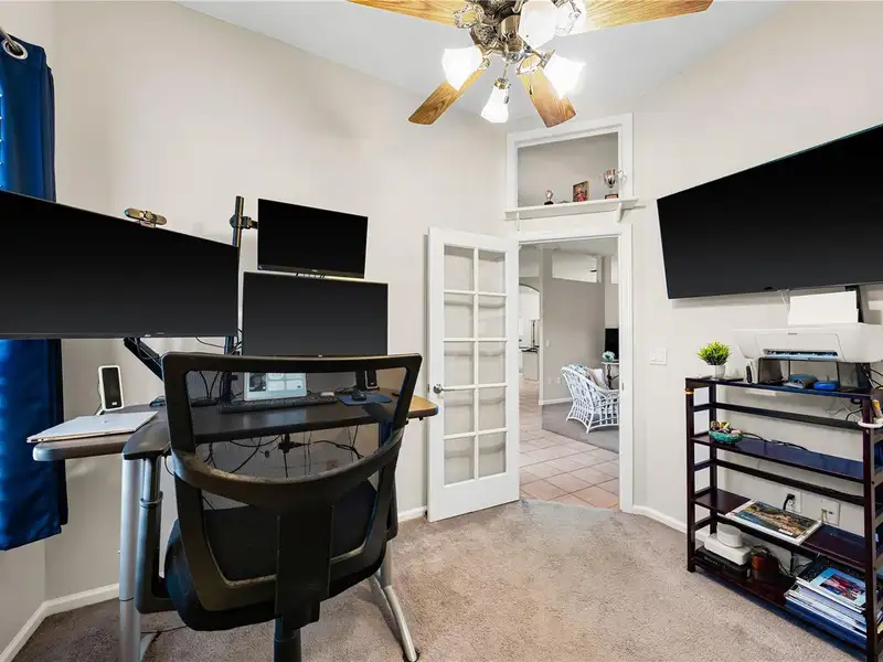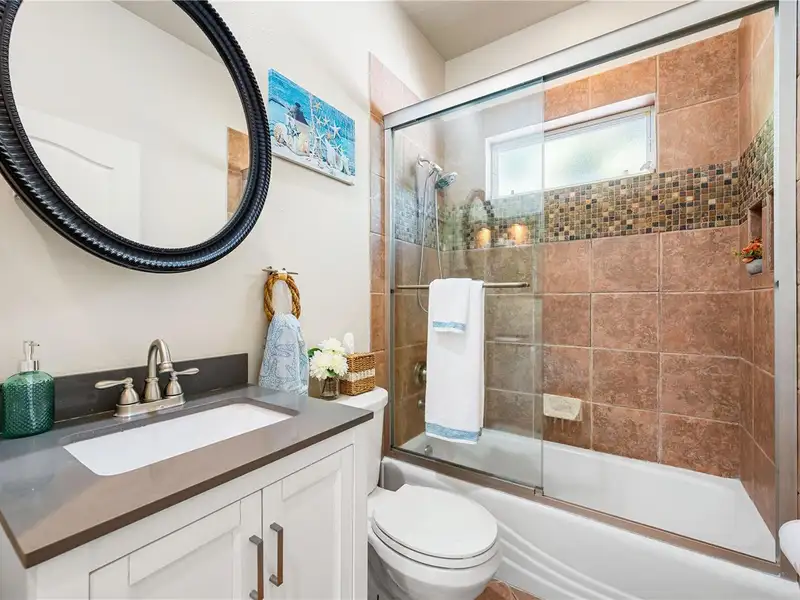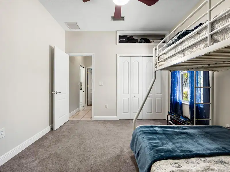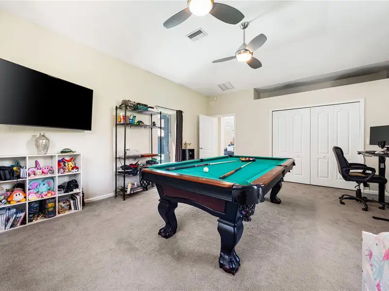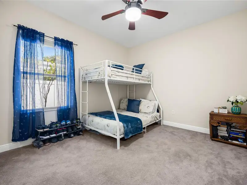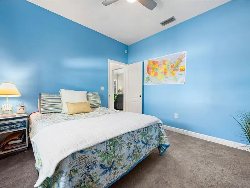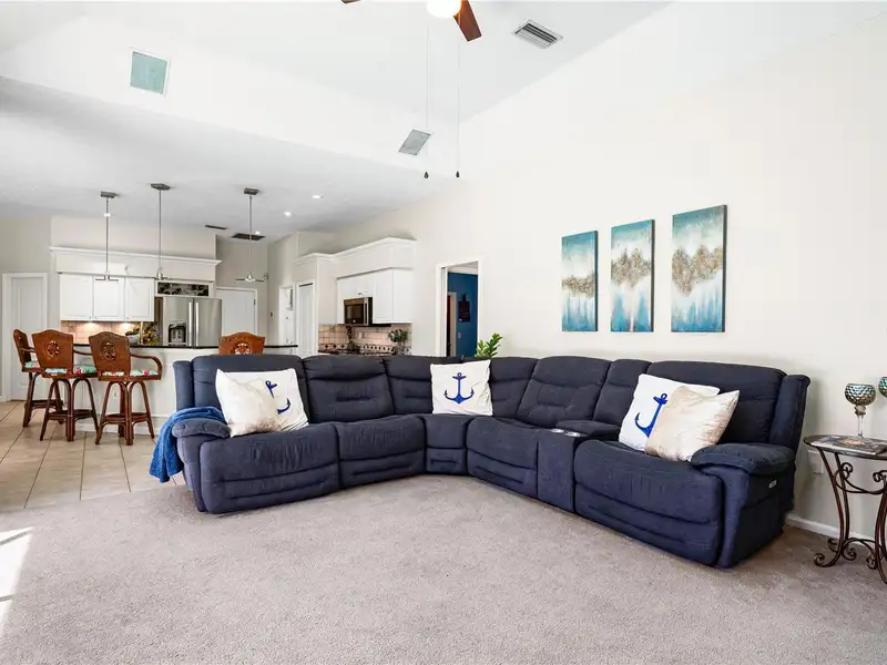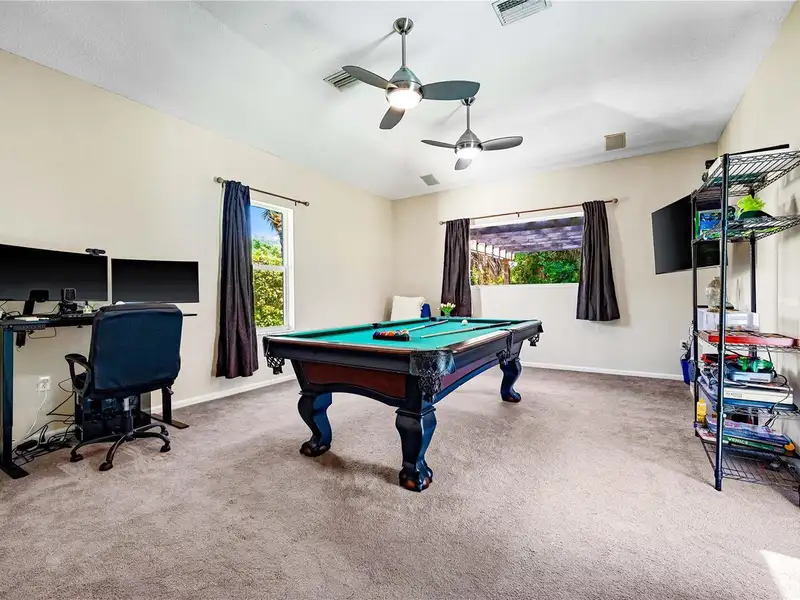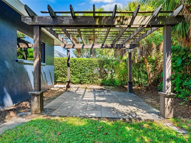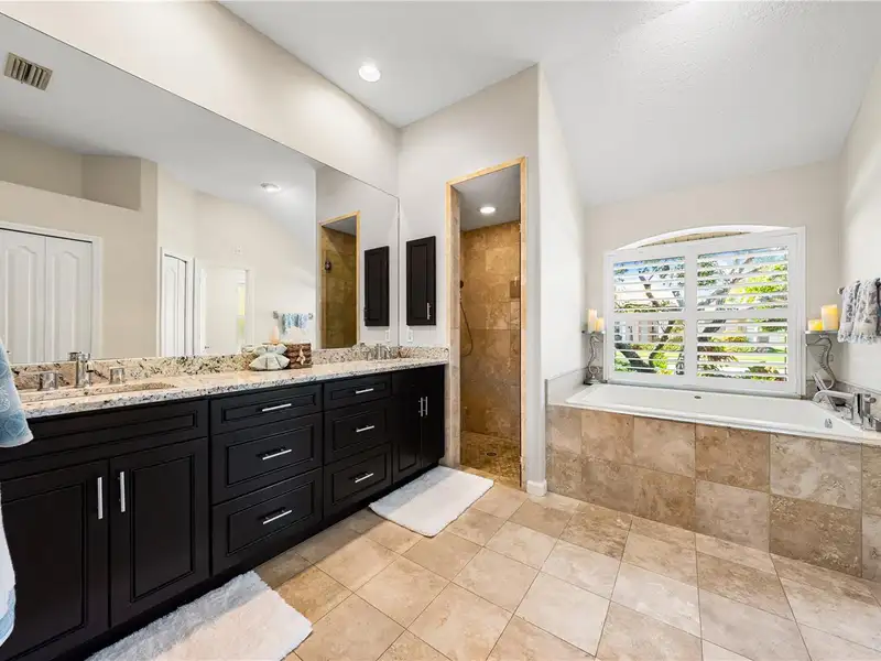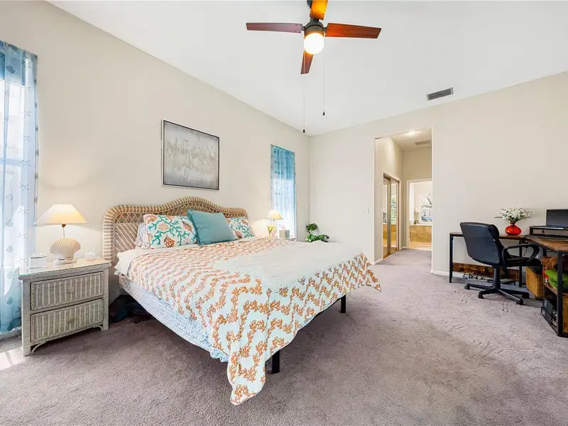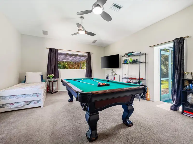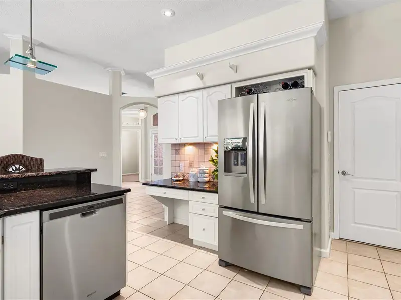 One of the largest homes in Bay Oaks Estates, this 5-bed, 2.5-bath single-story pool retreat delivers the best of indoor-outdoor Florida living with flexible spaces for guests, work, and play. Curb appeal pops with a brick paver circular drive, lush landscaping, and a covered, columned entry with French double doors and an arched transom. Inside, high ceilings and an abundance of natural light set a welcoming tone. The formal living and dining rooms flow to the heart of the home – a well-appointed kitchen designed for everyday living and entertaining, featuring granite counters, tile backsplash, stainless appliances, a center island with raised breakfast bar, closet pantry, built-in desk and wine rack, recessed & pendant lighting, and a picturesque breakfast nook with wraparound windows. The kitchen opens to the spacious family room with a tray ceiling and mirrored media niche. A pocketing three-panel slider seamlessly extends the living space to the covered lanai and screened pool; additional sliders from the formal living room, the primary suite, and a secondary bedroom maintain the indoor–outdoor connection. Out back, the lanai enjoys a private, tranquil, tree-lined backdrop, overlooking a curved, free-form pool with twin arc fountain jets, a raised sun terrace for lounging, and generous space to relax or gather. A screen door leads to the lawn and a separate pergola patio with power – perfect for morning coffee or an evening grill. From the backyard you have direct access to the Legacy Trail, the popular paved, multi-use path linking Sarasota and Venice, for miles of biking and walking through nature. The private primary retreat offers lanai access, two closets (one walk-in), and a spa-like en-suite bath with a Jacuzzi jetted soaking tub framed by an arched window with plantation shutters, separate walk-in shower with wall body sprays, a long double vanity, and a private water closet. Thoughtful split-bedroom design places three secondary bedrooms and a full bath together in their own wing (one is oversized with lanai access that can flex as a game/media space), while a full 5th bedroom – currently used as an office – sits near the primary suite. An interior laundry room adds storage shelves, cabinets, and a utility sink. Major updates for peace of mind include: replumbed water lines, roof (2015), A/C (2019), new water heater (2024), new pool pump (2024), kitchen appliances (2021), washer and dryer (2023), polycarbonate storm panels, and irrigation. All in a well-kept, low-fee, pet-friendly Osprey community conveniently located just minutes from top-rated schools, including the prestigious Pine View School, and close to the Gulf beaches of world-renowned Siesta Key, Nokomis, and Venice, as well as Oscar Scherer State Park, and a variety of shopping, dining, entertainment, and everyday conveniences; the Gulf Coast lifestyle at its finest. Schedule your private showing today and fall in love with the lifestyle that 571 Pine Ranch East Rd has to offer.
