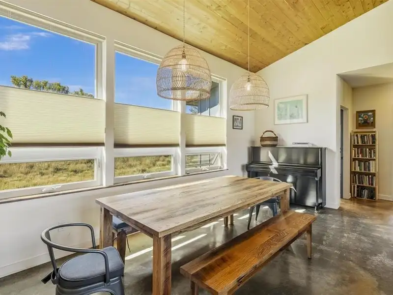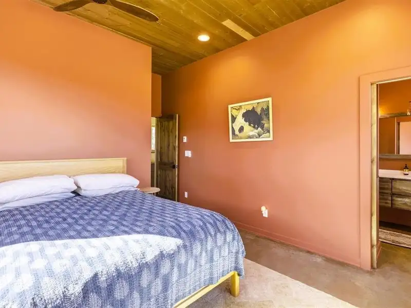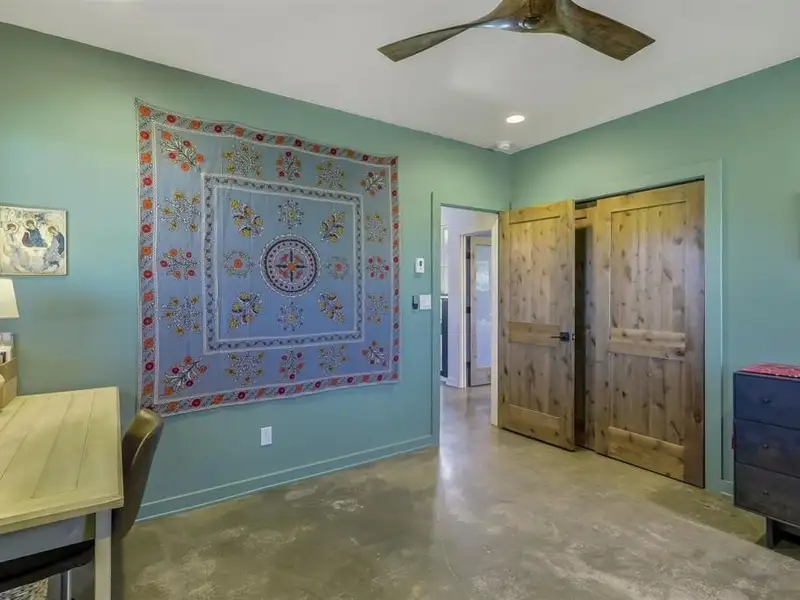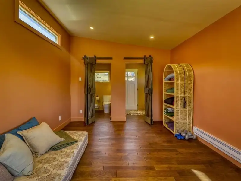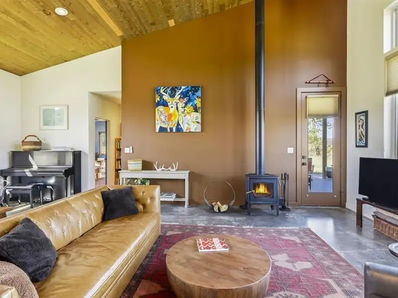 - Heated concrete floors and wood burning stove