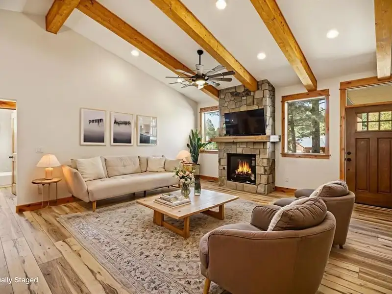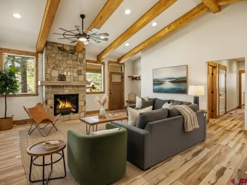 Kimberly Brown, Galles Properties, C: 970-749-3849, Kim@GallesProperties.com, www.crenmls.com: Simplify life and magnify your quality in this brand new single level home that's loaded with upgrades and just coming to completion in walkable uptown Pagosa! 63 Redwood Dr is a pristine new single-level home in the Upper Pagosa Lakes with 1704 sf 3 bedrooms and 2.5 baths offering convenience, luxury, and privacy in a walkable biking and street legal LSV location. Perfectly positioned on an elevated treed corner lot of 0.26 acres in a tranquil, well established, low traffic neighborhood, it features an already privacy fenced backyard, T&G covered concrete apron and entry, and full paved driveway too! This home shines with well thought out detail, care, and rich finishes throughout-a light filled seamless open split floor plan, designed for modern living and entertaining with a large walkout T&G covered deck. Enjoy low-maintenance smart siding with a rich hued cedar gable, thick cut posts and the peace of mind that comes with a 1-year builder’s warranty. Accessed via year-round county-maintained roads, the home features easy utilities, including city water, sewer, natural gas, and electricity, with both AC and heat. The energy-efficient Navien tankless hot water heater ensures no wait no waste and comfort year-round. The airy great room is accented by beam-lined vaulted ceilings and a stylish fieldstone fireplace, complete with a custom mantle and a blower for those cozy mountain evenings. The generous gourmet cookery showcases an oversized butcher block topped storage island, subway tile backsplash, upgraded Whirlpool appliances (including a slide-in natural gas range with air fryer), and custom granite countertops, and a roomy butler-style pantry with electrical outlets. Enjoy the spacious and well organized laundry room complete with custom cabinets, butcher block folding table and ample storage making keeping everything tidy and accessible easy. Relax in the luxurious master suite, which features a large walk-in closet with built-ins and a barn door slider, a spa like bath with double sink vanity, upgraded custom tiled walk in shower with a built-in bench seat, and upgraded quartz vanity countertops. Expand your special Pagosa lifestyle even more and indulge in four seasons of grill to table fun surrounded by the sounds of nature simply by opening the door and stepping onto the sprawling covered rear deck-finished with Trex for durability and lighted for evening enjoyment. The oversized garage comes equipped with a plank-style Clopay garage door, a quiet belt-driven opener with Wi-Fi capability, an EV plug outlet, and a storage room for all your gear. Ideally located in a walkable neighborhood suitable for biking or using street-legal LSVs, you’ll have convenient access to uptown amenities. The world’s deepest hot springs are just a short 5-minute drive away in historic downtown Pagosa Springs, and winter sports enthusiasts will appreciate the proximity to Wolf Creek Ski Area, merely 40 minutes away. Enjoy the beauty of 2.8 million acres of national forest, fish-rich rivers, and lakes, as well as a recreation center and a 27-hole golf course nearby. Don’t miss out on this incredible opportunity to experience why Pagosa Springs was voted in the top 10 best mountain towns to live in! Request a copy of the full detailed spec sheet for a more in depth look-Virtual Inspiration has been included for an exciting look into the future. Schedule your showing today-Your cool mountain digs are calling!