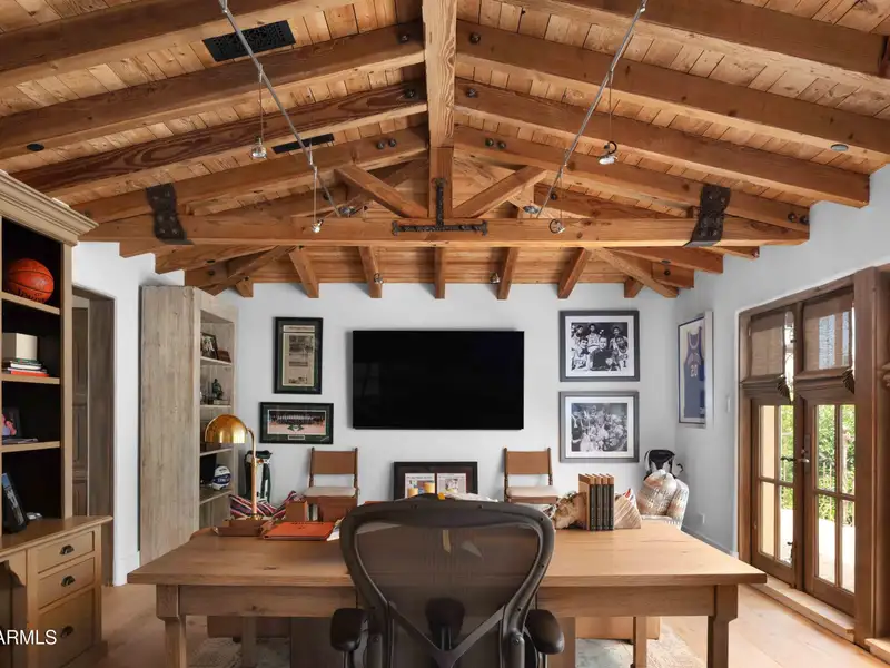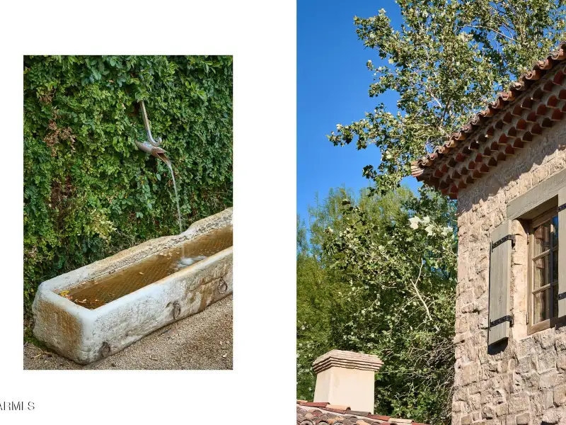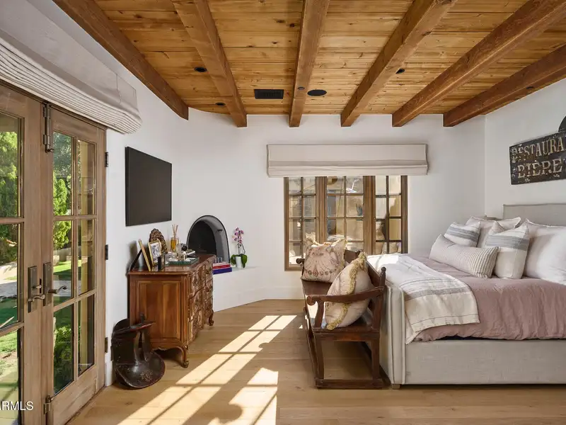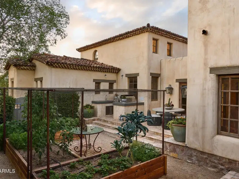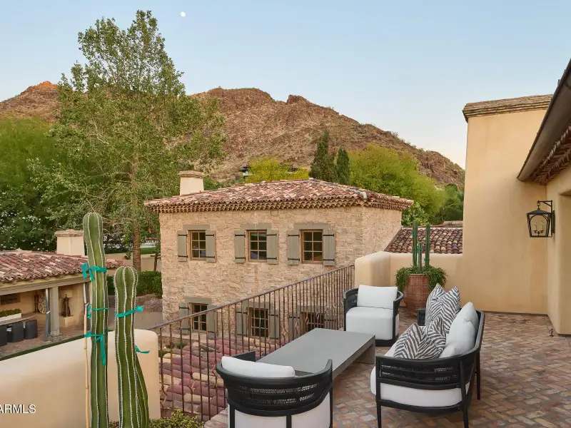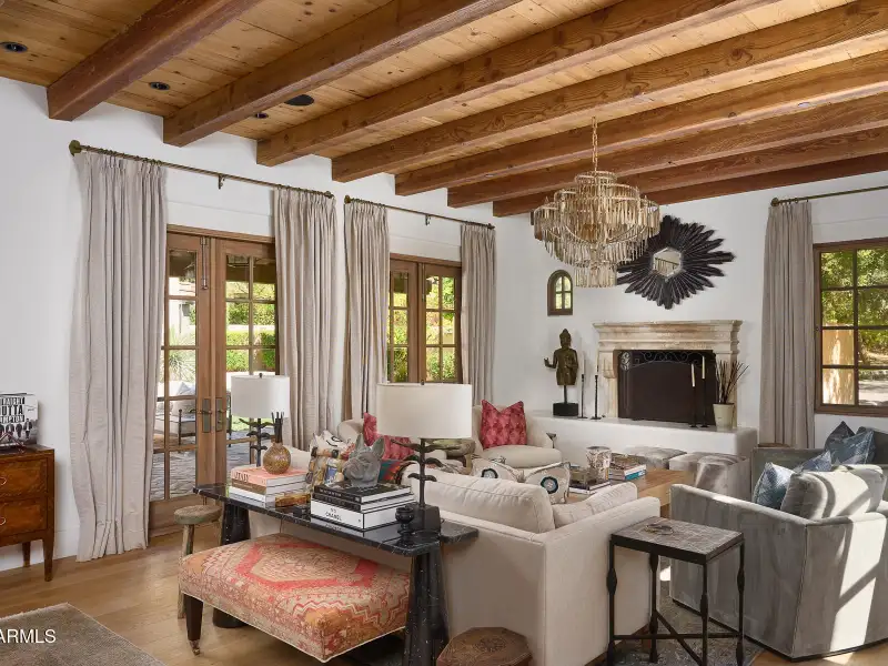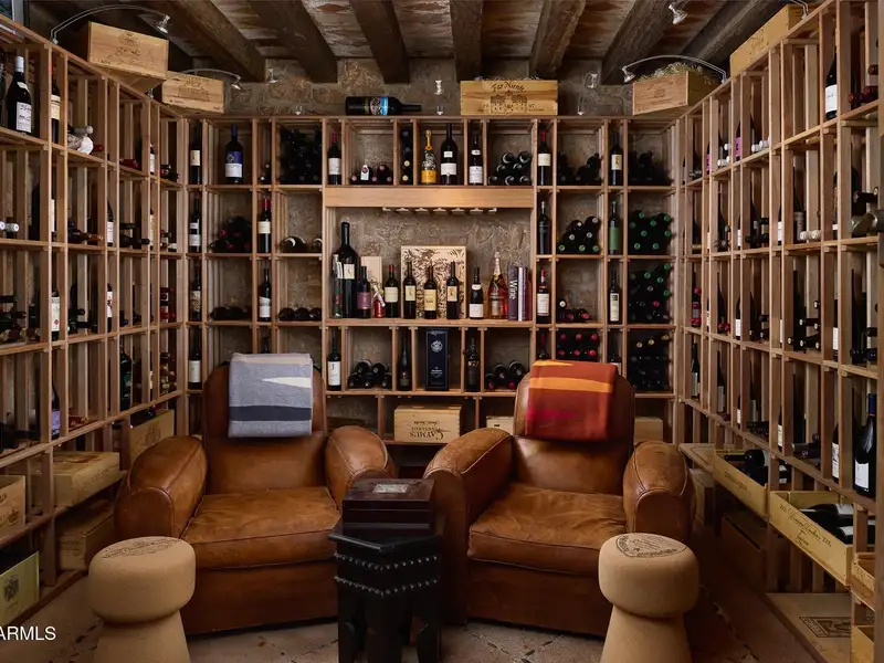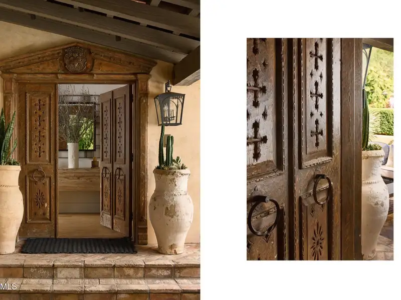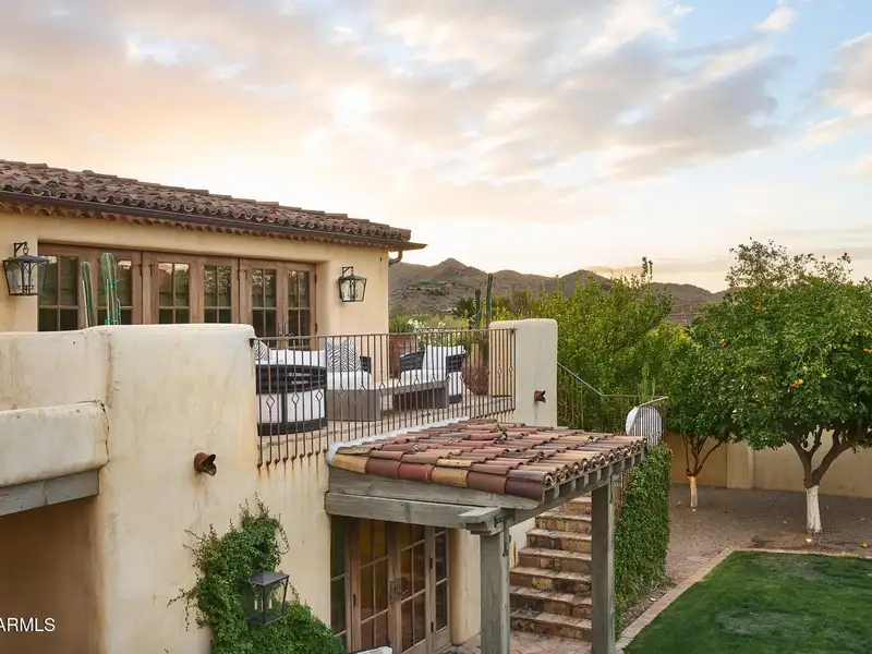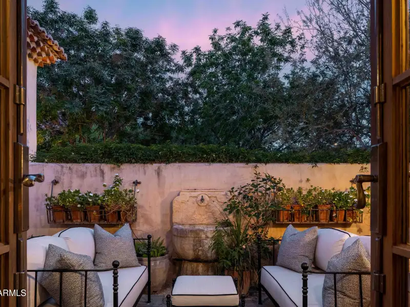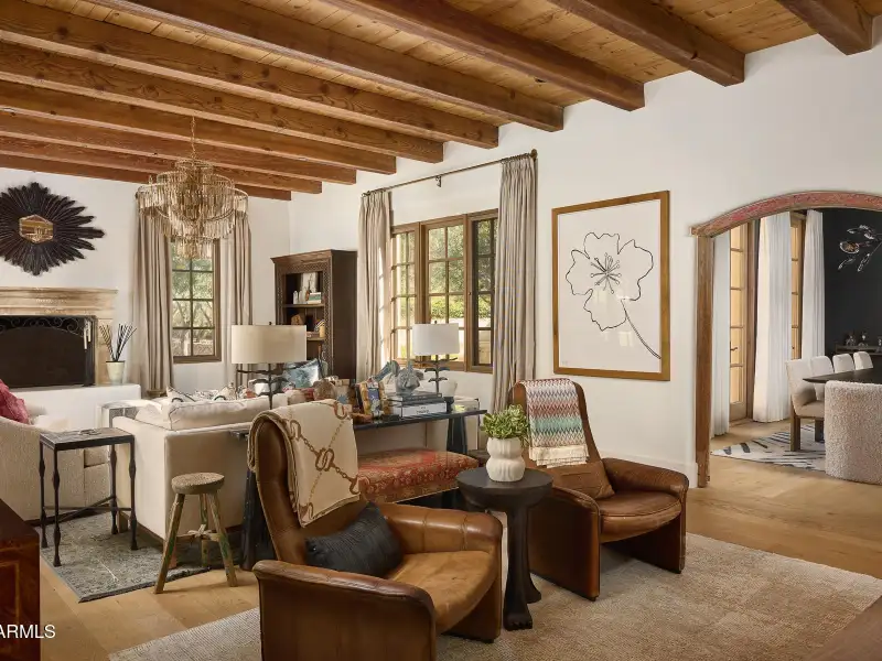 Step into a realm of refined French Mediterranean architectural grace, where timeless luxury meets modern innovation. Originally designed by renowned OZ Architects this extraordinary estate reflects a pedigree of distinction. Masterfully restored and renovated in 2023-this residence artfully blends antique European elements with thoughtful, refined finishes throughout. Spanning over 7,300 square feet on a lush 1.186-acre lot with dramatic mountain views, this home offers unmatched craftsmanship and functionality. Highlights include 4 en suite bedrooms, 5 full baths, a dedicated office (easily a 5th bedroom), a billiards room, a craft room, a roof deck, and a three-car garage with ample guest parking. Seamlessly integrated with a Savant Home Automation system, the property provides effortless control of lighting, climate, entertainment, and securityelevating everyday living to new heights. The enchanting grounds feature multiple private courtyards, a vegetable and herb garden, 8 fireplaces, an exterior fire pit, a private, heated pool with a charming poolside ramada, and a 5,000-bottle-capacity wine cellar. Designed for both entertaining and intimate gatherings, the formal dining room offers a private courtyard view and direct access to the wine cellar, while the butler's pantry conveniently connects the kitchen and dining areas. The chef's kitchen is a culinary dream, featuring top-of-the-line Wolf appliances: a six-burner plus griddle double oven range, a steam oven and a Sub-Zero refrigerator/freezer. A dedicated coffee station includes a Miele in-wall espresso system and warming drawer for morning indulgence. The luxurious primary suite overlooks the lush grounds and private patio, with a serene window bench nook. The spa-like primary bath boasts a spacious walk-in shower, standalone tub, dual vanities, and 2 separate fully renovated oversized closets. Additional bedrooms offer walk-in closets and scenic mountain views, providing comfort and privacy. From Venetian plaster walls and rough-hewn ceiling beams to custom European millwork, every detail radiates Old World charm and enduring elegance. With room to expand or personalize further, this is a residence where artistry, sophistication, and modern comforts come together in perfect harmony. Welcome to a masterpiece of luxury livingtimeless, distinguished, and simply extraordinary.