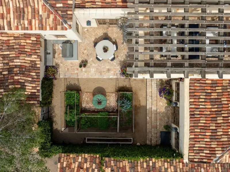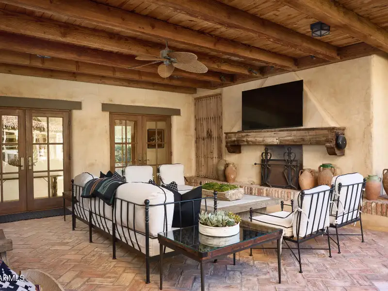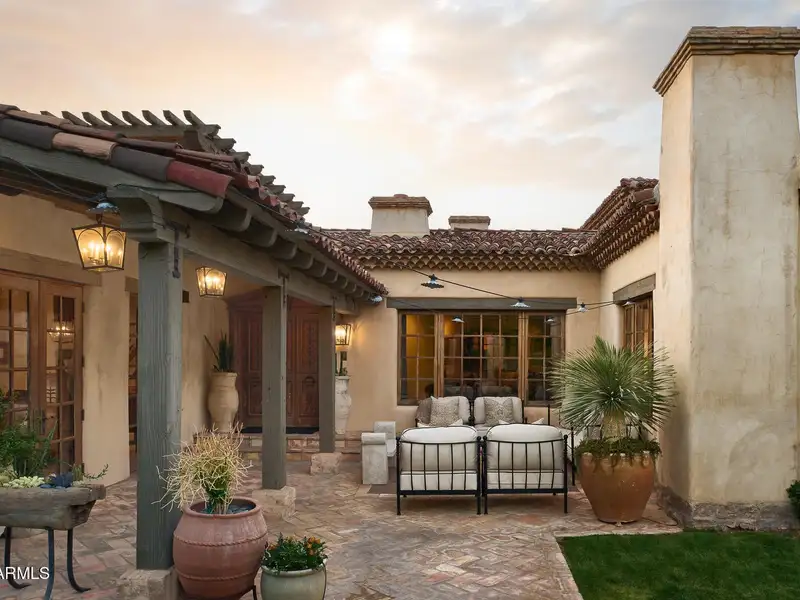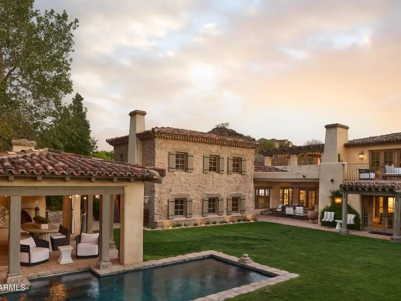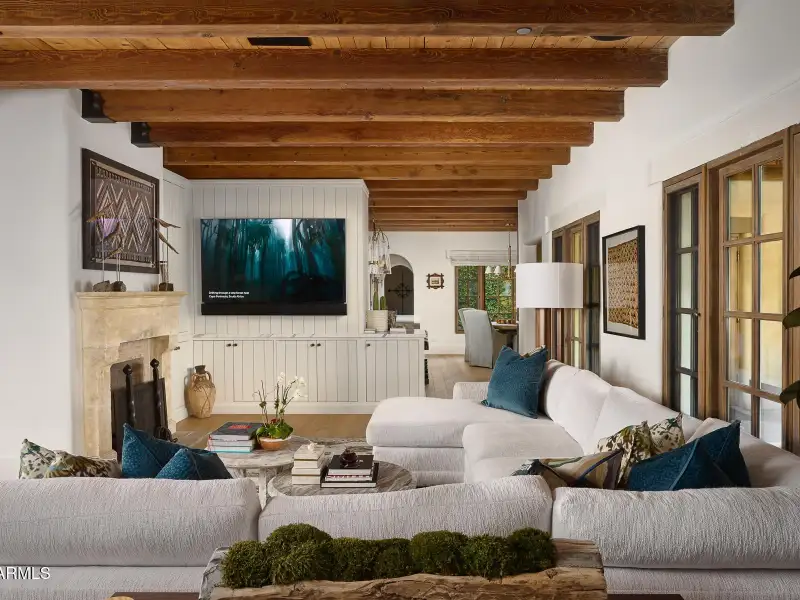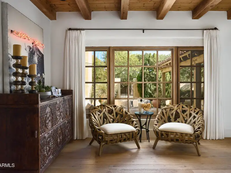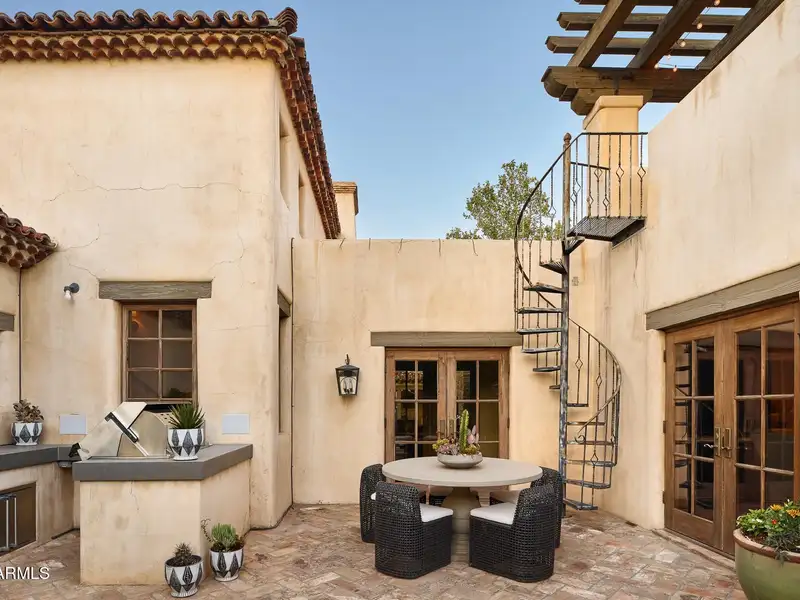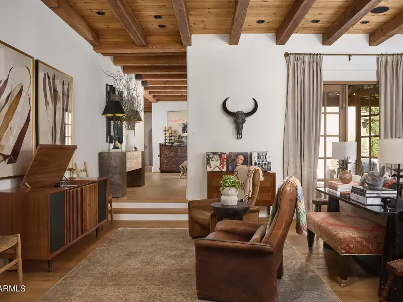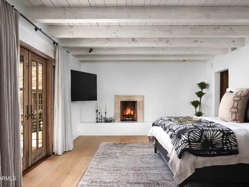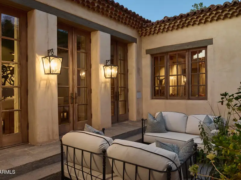 Step into a realm of refined French Mediterranean architectural grace, where timeless luxury meets modern innovation. Originally designed by renowned OZ Architects this extraordinary estate reflects a pedigree of distinction. Masterfully restored and renovated in 2023-this residence artfully blends antique European elements with thoughtful, refined finishes throughout. Spanning over 7,300 square feet on a lush 1.186-acre lot with dramatic mountain views, this home offers unmatched craftsmanship and functionality. Highlights include 4 en suite bedrooms, 5 full baths, a dedicated office (easily a 5th bedroom), a billiards room, a craft room, a roof deck, and a three-car garage with ample guest parking. Seamlessly integrated with a Savant Home Automation system, the property provides effortless control of lighting, climate, entertainment, and securityelevating everyday living to new heights. The enchanting grounds feature multiple private courtyards, a vegetable and herb garden, 8 fireplaces, an exterior fire pit, a private, heated pool with a charming poolside ramada, and a 5,000-bottle-capacity wine cellar. Designed for both entertaining and intimate gatherings, the formal dining room offers a private courtyard view and direct access to the wine cellar, while the butler's pantry conveniently connects the kitchen and dining areas. The chef's kitchen is a culinary dream, featuring top-of-the-line Wolf appliances: a six-burner plus griddle double oven range, a steam oven and a Sub-Zero refrigerator/freezer. A dedicated coffee station includes a Miele in-wall espresso system and warming drawer for morning indulgence. The luxurious primary suite overlooks the lush grounds and private patio, with a serene window bench nook. The spa-like primary bath boasts a spacious walk-in shower, standalone tub, dual vanities, and 2 separate fully renovated oversized closets. Additional bedrooms offer walk-in closets and scenic mountain views, providing comfort and privacy. From Venetian plaster walls and rough-hewn ceiling beams to custom European millwork, every detail radiates Old World charm and enduring elegance. With room to expand or personalize further, this is a residence where artistry, sophistication, and modern comforts come together in perfect harmony. Welcome to a masterpiece of luxury livingtimeless, distinguished, and simply extraordinary.