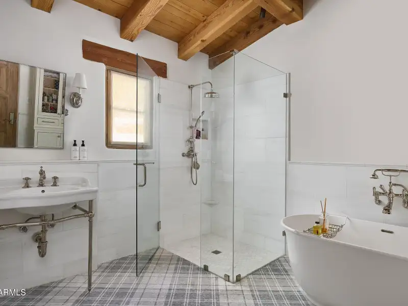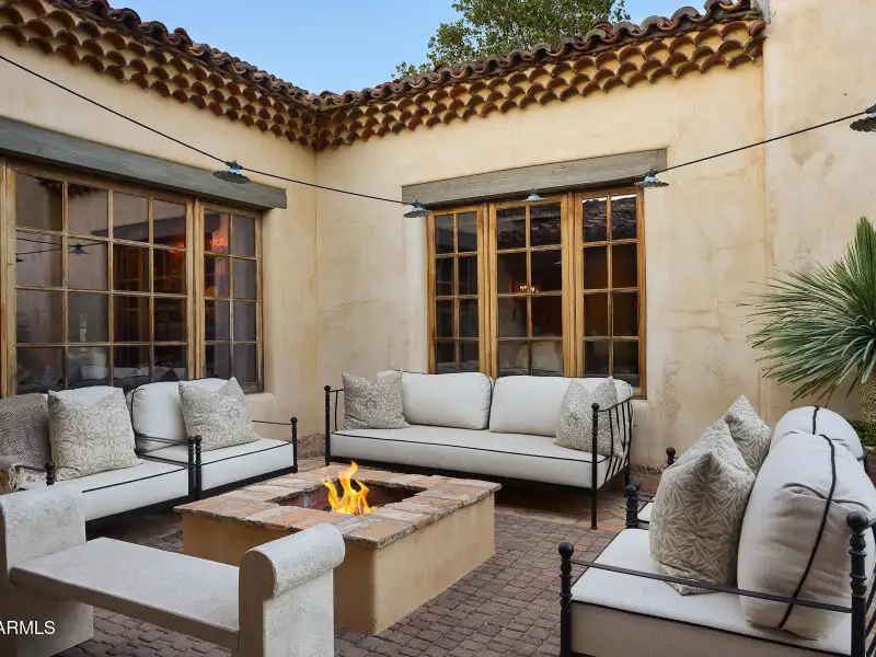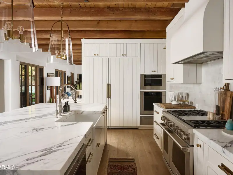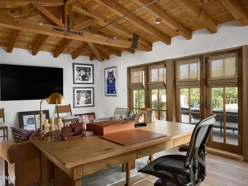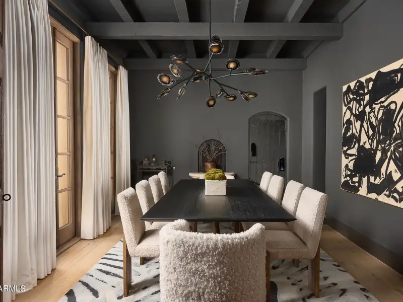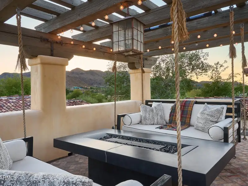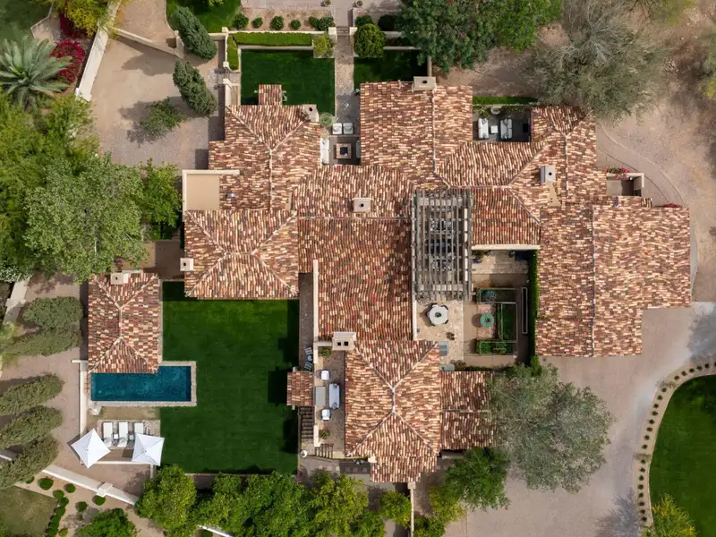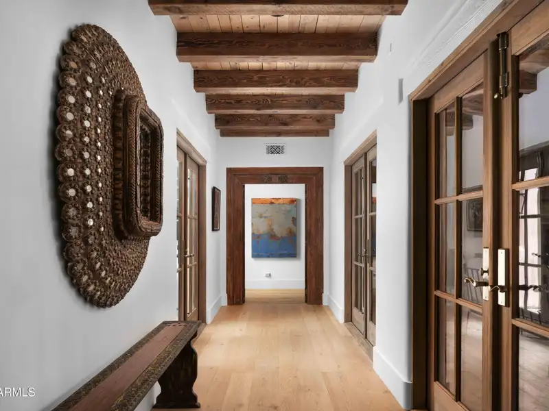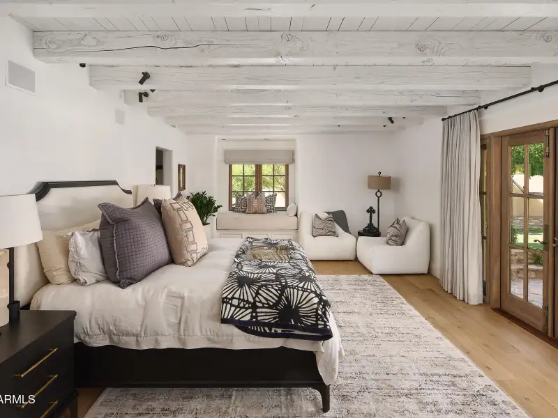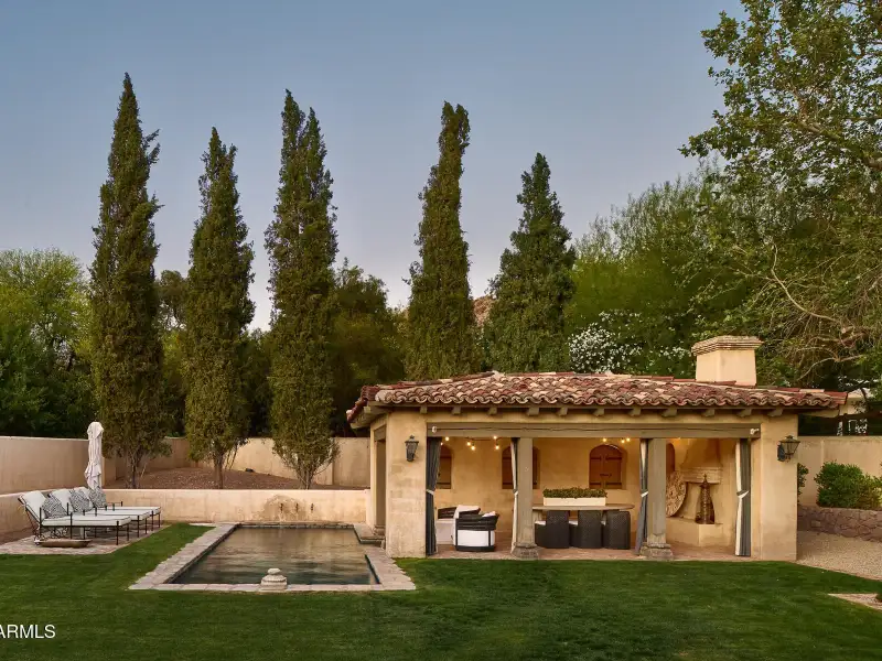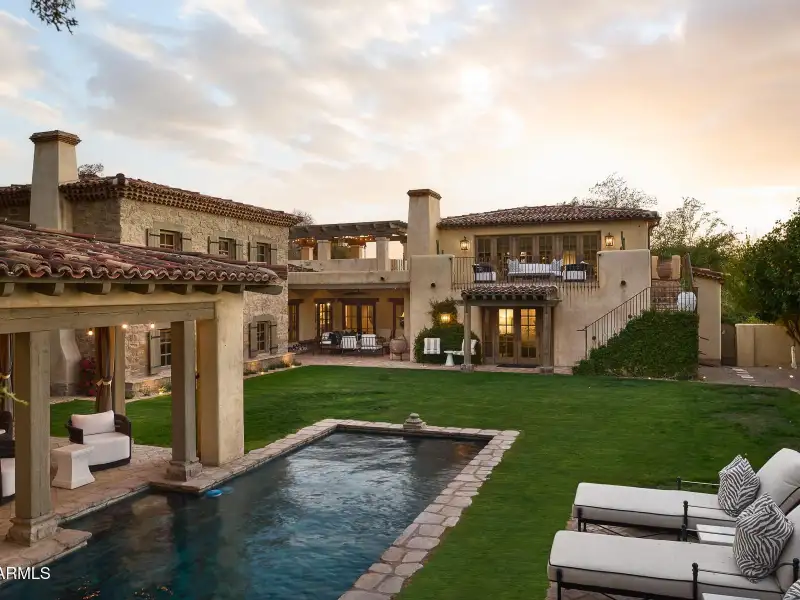 Step into a realm of refined French Mediterranean architectural grace, where timeless luxury meets modern innovation. Originally designed by renowned OZ Architects this extraordinary estate reflects a pedigree of distinction. Masterfully restored and renovated in 2023-this residence artfully blends antique European elements with thoughtful, refined finishes throughout. Spanning over 7,300 square feet on a lush 1.186-acre lot with dramatic mountain views, this home offers unmatched craftsmanship and functionality. Highlights include 4 en suite bedrooms, 5 full baths, a dedicated office (easily a 5th bedroom), a billiards room, a craft room, a roof deck, and a three-car garage with ample guest parking. Seamlessly integrated with a Savant Home Automation system, the property provides effortless control of lighting, climate, entertainment, and securityelevating everyday living to new heights. The enchanting grounds feature multiple private courtyards, a vegetable and herb garden, 8 fireplaces, an exterior fire pit, a private, heated pool with a charming poolside ramada, and a 5,000-bottle-capacity wine cellar. Designed for both entertaining and intimate gatherings, the formal dining room offers a private courtyard view and direct access to the wine cellar, while the butler's pantry conveniently connects the kitchen and dining areas. The chef's kitchen is a culinary dream, featuring top-of-the-line Wolf appliances: a six-burner plus griddle double oven range, a steam oven and a Sub-Zero refrigerator/freezer. A dedicated coffee station includes a Miele in-wall espresso system and warming drawer for morning indulgence. The luxurious primary suite overlooks the lush grounds and private patio, with a serene window bench nook. The spa-like primary bath boasts a spacious walk-in shower, standalone tub, dual vanities, and 2 separate fully renovated oversized closets. Additional bedrooms offer walk-in closets and scenic mountain views, providing comfort and privacy. From Venetian plaster walls and rough-hewn ceiling beams to custom European millwork, every detail radiates Old World charm and enduring elegance. With room to expand or personalize further, this is a residence where artistry, sophistication, and modern comforts come together in perfect harmony. Welcome to a masterpiece of luxury livingtimeless, distinguished, and simply extraordinary.