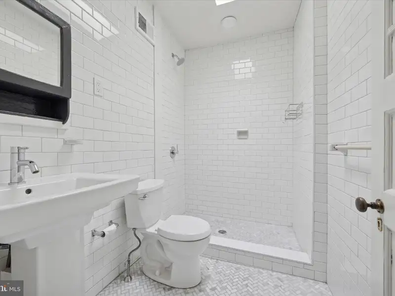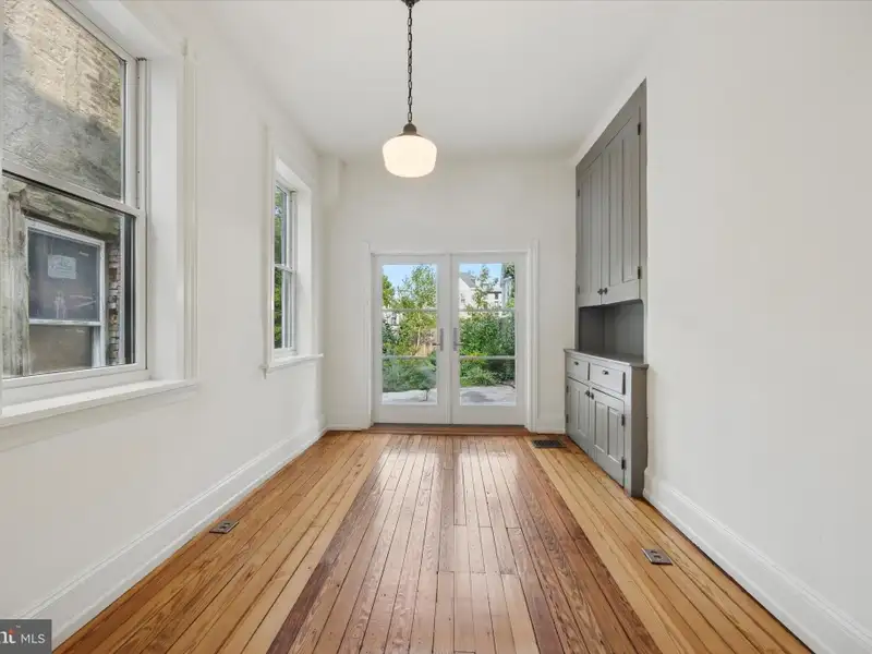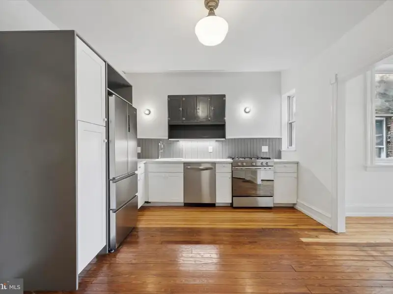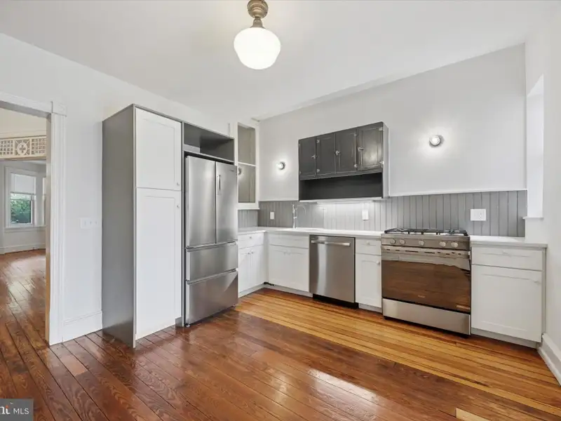 Every ounce of original charm was not only retained when this right-sized house got all the right upgrades just three years ago, it was enhanced with salvaged, vintage and pitch-perfect repro details throughout. There are original pine floors, high ceilings, just-right light fixtures, Andersen windows and at least one uber-charming element in every room. The main-floor layout provides the best of both worlds-the front living room off the entry hall is a clearly delineated space all its own, while the middle kitchen, rear dining room and back yard flow together for a contemporary open-plan feel. The living room has a decorative fireplace with gorgeous original mantel plus architectural charm from the angled set of front windows. These are a nice complement to the oversized archway with original fretwork spandril. From the hall, another oversized doorway leads to the spacious L-shaped kitchen, where white Shaker-style lower cabinets and pantry let the salvaged beadboard backsplash, statement salvaged upper cabinet and a sweet original closet with glass-paned door shine. White Caesarstone countertops with undermount sink and Grohe pull-down faucet alongside stainless steel appliances, including a slide-in five-burner range and French door fridge, make this space as effortlessly functional as it is warm and stylish. The large dining room has a salvaged butler's pantry and is flooded with light from two windows and Andersen French doors to the rear patio and lush garden. Back inside, the original staircase that has a peek-a-boo window to the kitchen leads to a rear primary suite, two more spacious bedrooms and a hall bath. The primary bedroom with a large double closet offers a peaceful view of the rear garden; its en-suite bathroom has a marble herringbone tile floor, clawfoot tub with full-wall subway tile surround, and salvaged beadboard around a vintage-inspired wall-mounted sink with chrome legs. The front bedroom is quite spacious and has a large closet; its charm is found in the square bay window. The middle bedroom is easily big enough for a double bed, if not a queen, and has an extra-deep closet. They share a hall bath with skylight, marble herringbone tile and full-wall subway wall tile, an extra-large step-in shower and pedestal sink flanked by ceramic lights. The exterior has every bit as much charm as the inside: Set behind a front garden, the handsome porchfront's exterior has a subdued sage green and gray palette that highlights the architectural details, and an unpainted original front door. And as a huge bonus, through the rear gate is an unofficial parking spot and a sweet neighborhood hang space complete with firepit. This great location puts both Germantown and Mount Airy favorites like Weaver's Way, Ultimo Coffee, Uncle Bobbie's, and of course access to the Wissahickon, all within a mile of your front door-and the Upsal St Regional Rail station only .3 miles away.