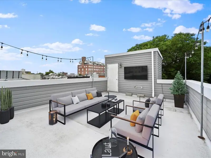 - Large rooftop deck with city views