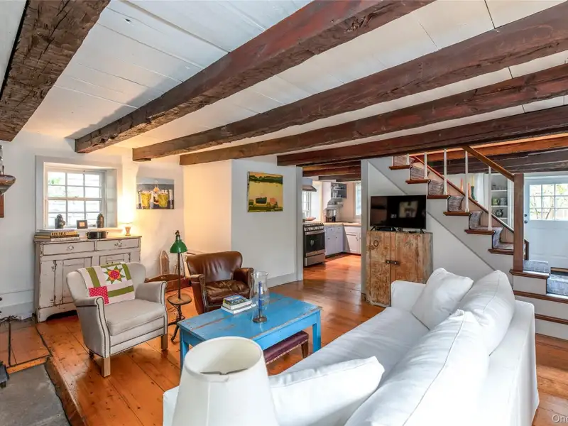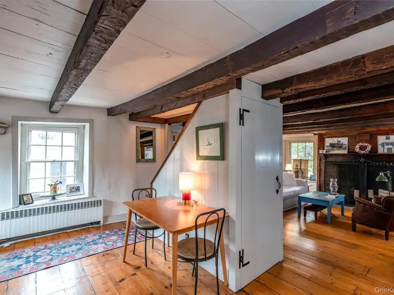 A stroll away from Piermont's riverfront cafes, galleries, and farmers market - and just minutes from Sparkill's acclaimed dining scene - stands a sandstone cottage with nearly three centuries of stories within its walls. Built in 1731 in the Dutch style, this home is believed to be the oldest in Piermont, and, according to the Piermont Historical Society, once served as a tavern that hosted George Washington. Inside, original details abound: wide-plank floors, hand hewn beamed ceilings, deep-set windows, and two oversized fireplaces anchor the living spaces. Recent updates, including a new bathroom and new roof. Upstairs, the unusually large primary bedroom is filled with natural light, while the second bedroom offers flexible use as a guest room or office. A private brick courtyard garden, shielded from the street, offers a quiet backdrop for morning coffee, outdoor gatherings with friends, or evenings under the stars. From here, you can wander to Tallman State Park's trails, bike along the river, kayak in the creek or enjoy dinner at one of Piermont's award-winning restaurants. Only 25 minutes to Manhattan, this home is both a historic treasure and a true retreat - where every day can feel like a weekend escape.